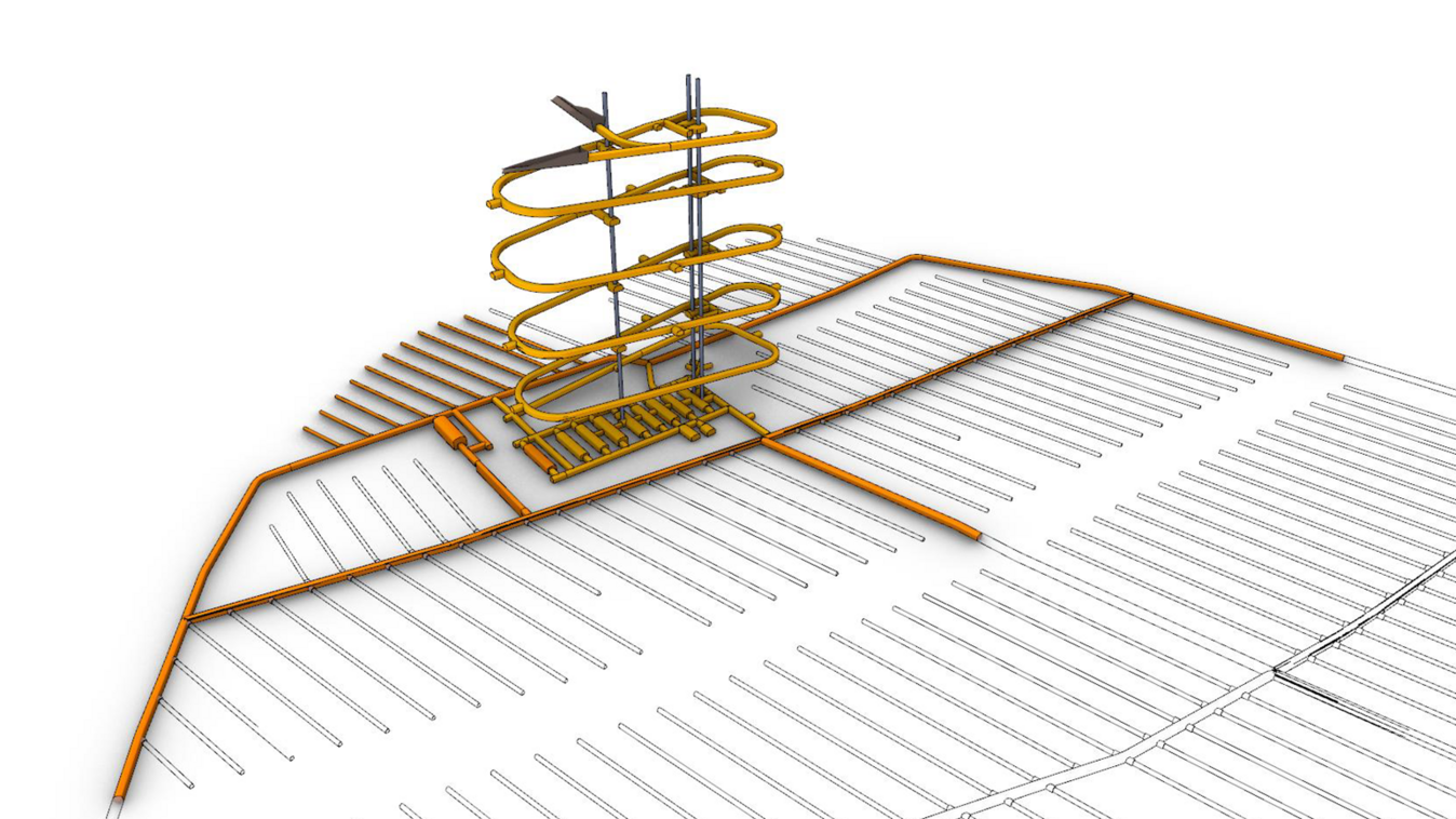 Unten im Urgestein wird ein System von Lagerstollen angelegt. Die Kooperationsvereinbarung umfasst die Projektierung, Planung und den Bau eines Zugangstunnels, drei vertikaler Schächte für Belüftung und Aufzug, eines zentralen Bereichs sowie Stamm- und Transporttunnel zu den ersten Lagerbereichen, in denen das verbrauchte Kernbrennstoff deponiert werden soll.