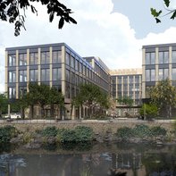 Moderner innerstädtischer Bürostandort als Neubau und neubaugleiche Bestandssanierung: Implenia plant, baut und modernisiert fünf Gebäude im Münchener Bruckmann-Quartier.