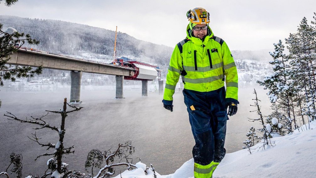 Der Bau einer Eisenbahnbrücke unter winterlichen Wetterbedingungen ist anspruchsvoll, besonders wenn sich Wetter und Temperatur plötzlich ändern. In Tangenvika arbeitet Implenia unter Bedingungen, die gelegentlich sowohl Frosttemperaturen als auch starken Schneefall bieten.