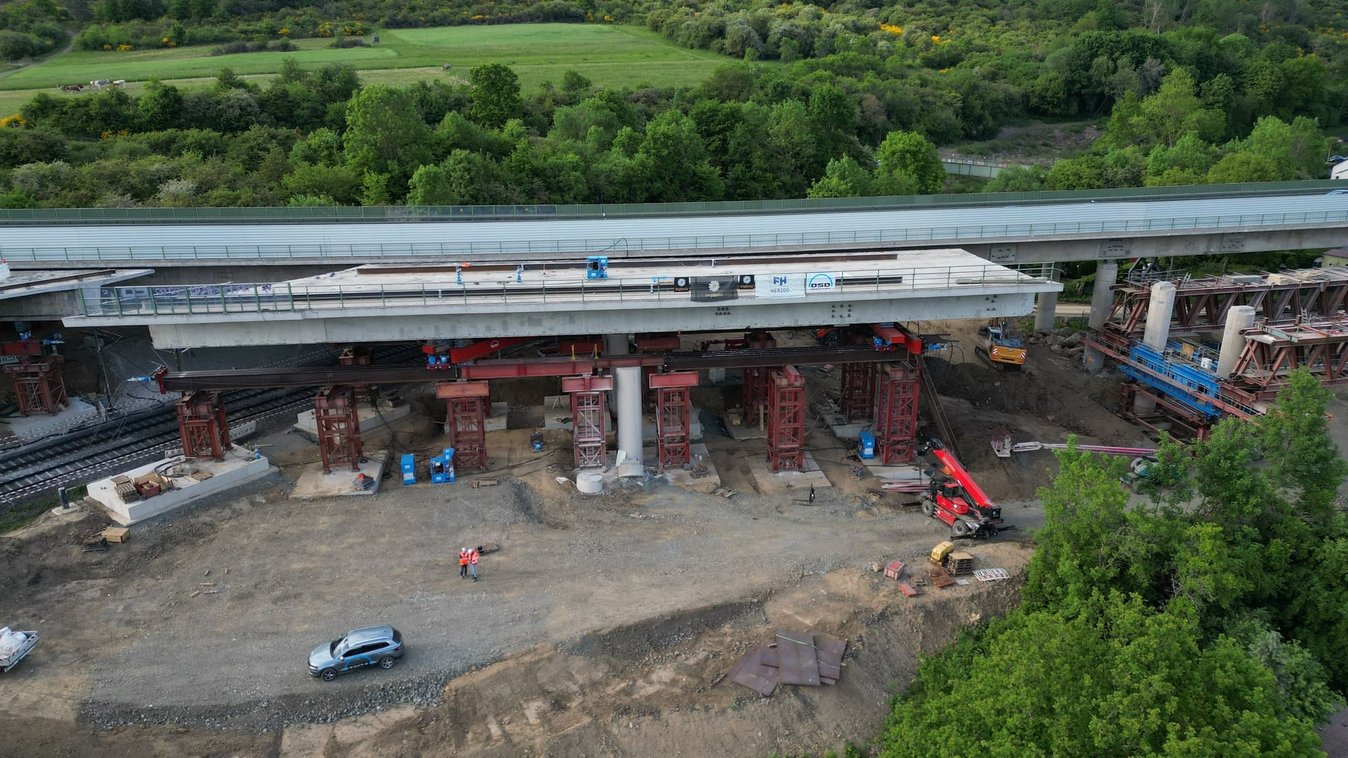 Die Überbauten der Autobahnbrücke werden getrennt für jede Richtungsfahrbahn als Durchlaufträger über 16 Felder hergestellt: