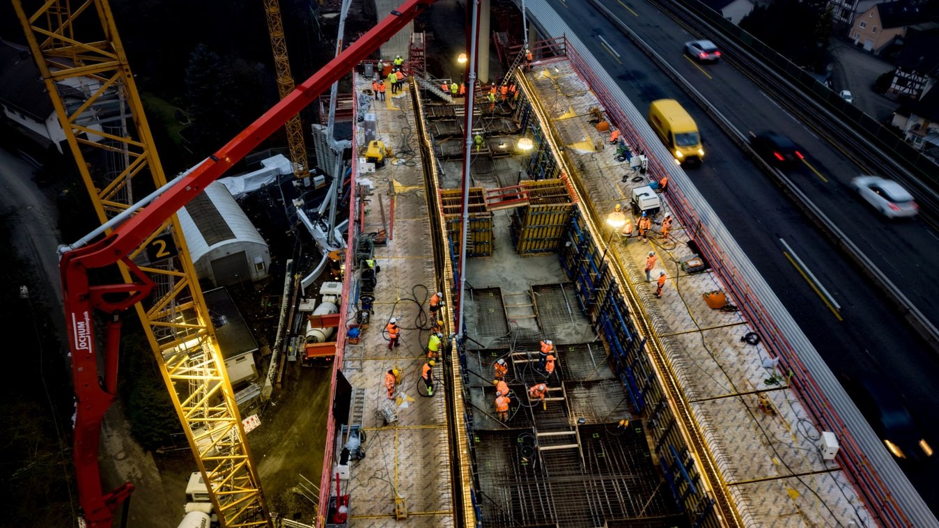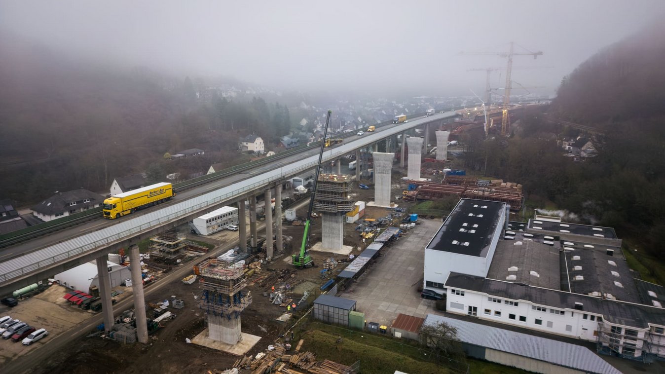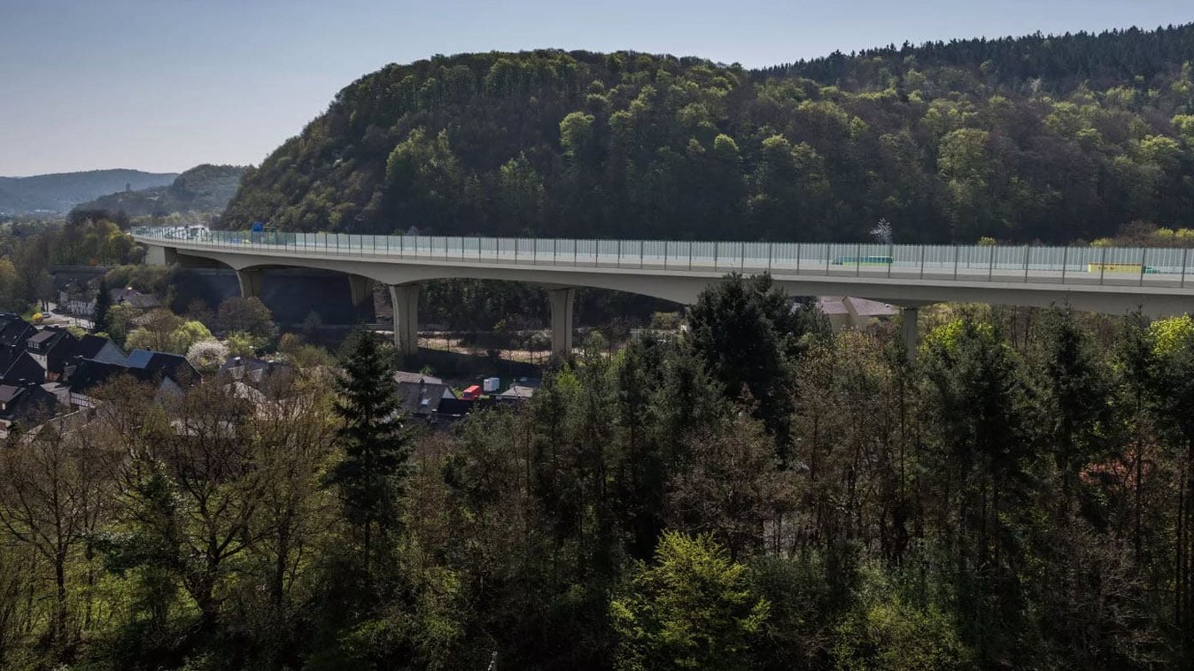 Die Talbrücke Sechshelden an der A45 besteht aus je zwei Teilbauwerken, die durch einen Neubau ersetzt werden.