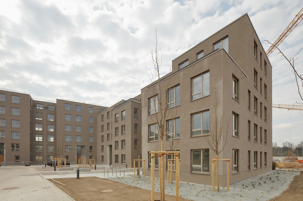 Nach Plänen der Münchener be_planen Architekten entstanden auf 20.890 Quadratmeter Geschossfläche 130 Zwei- bis Fünf-Zimmer-Wohnungen und sechs Maisonette-Wohnungen.