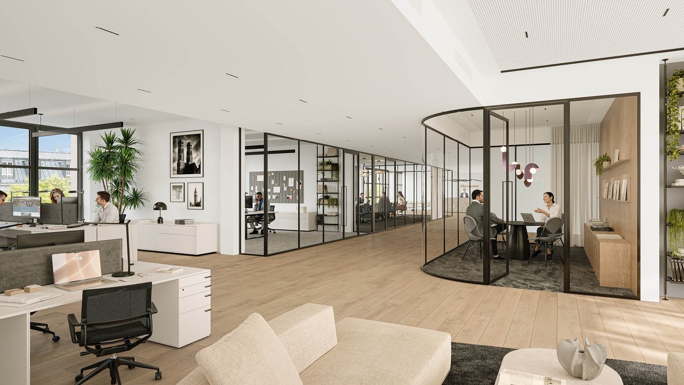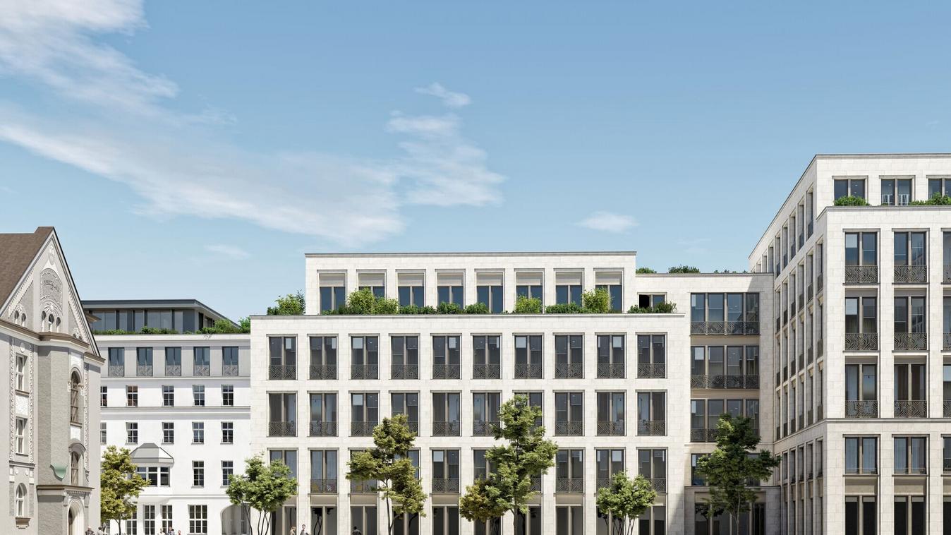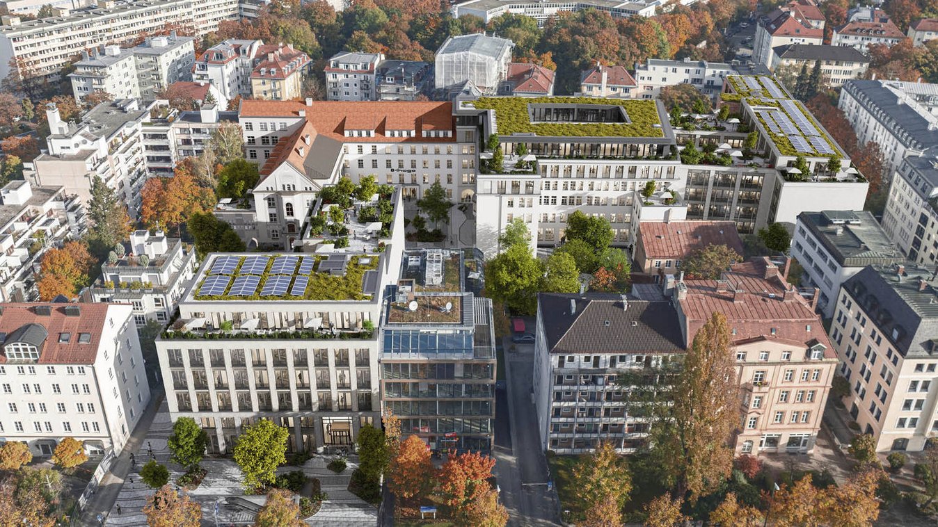 Moderner innerstädtischer Bürostandort als Neubau und neubaugleiche Bestandssanierung: Implenia plant, baut und modernisiert fünf Gebäude im Münchener Bruckmann-Quartier.