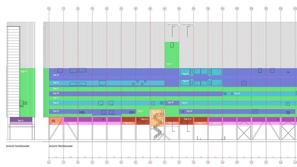 - ca. 3.500 m² Rückbau Fassade (Trapezblech u. Lamellen)