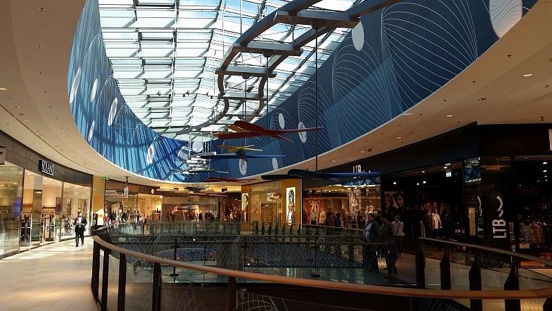 - Das 330 Meter lange, 100 Meter breite und 18 Meter hohe Einkaufszentrum mit einem Brutto-Rauminhalt von 714.300 Kubikmeter und einer Bruttogeschossfläche von 96.000 Quadratmeter bietet eine Verkaufsfläche von 59.510 Quadratmeter. Die Geschäfte verteilen sich auf vier Geschosse: das Kellergeschoss, das Erdgeschoss, das Obergeschoss und ein acht Meter zurückgesetztes Staffelgeschoss.