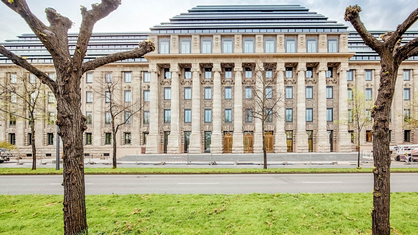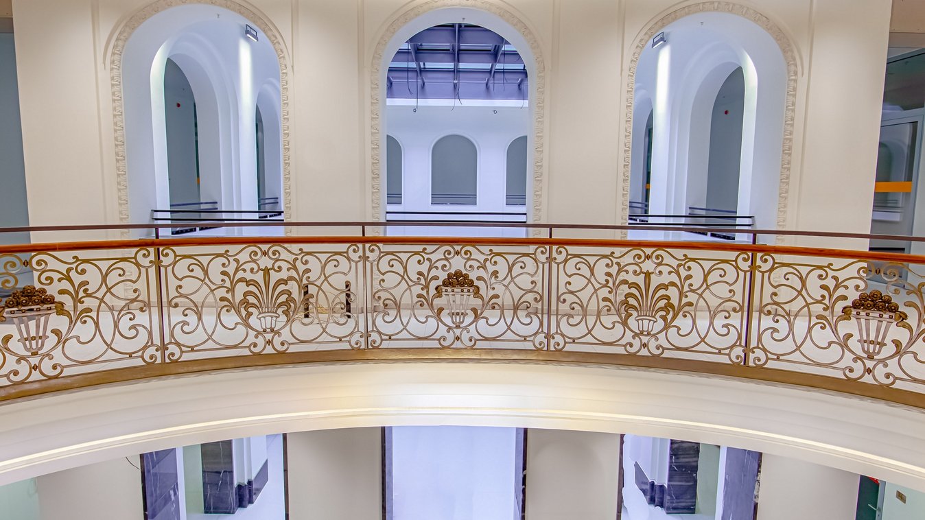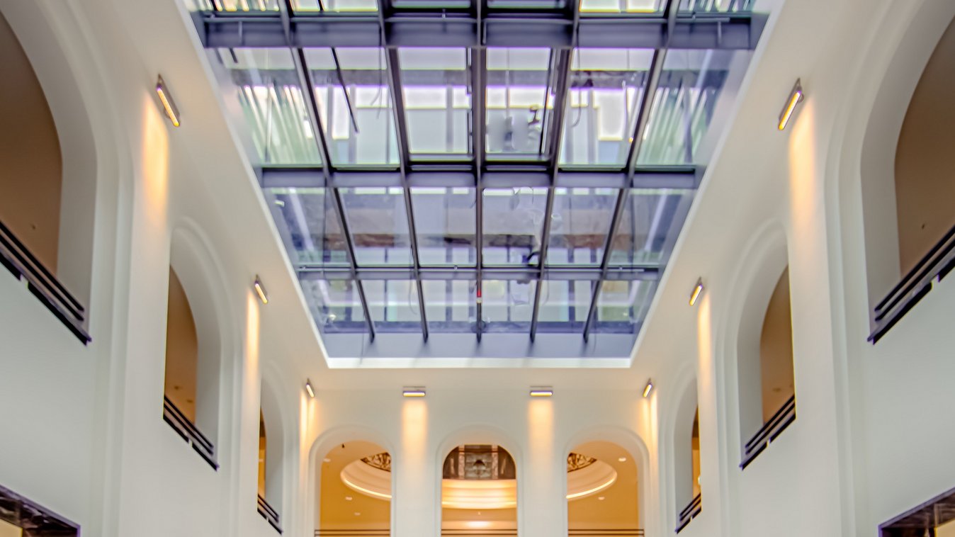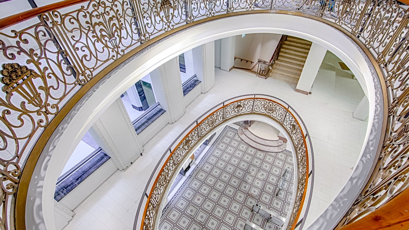 Die denkmalgeschützten, neoklassizistischen Fassaden der unteren vier Geschosse wurden aufgearbeitet und umfassend saniert. Die imposante, historische Eingangshalle ist originalgetreu in den Neubau integriert und die zweigeschossige Rotunde mit originalen Bauteilen wiederhergestellt.