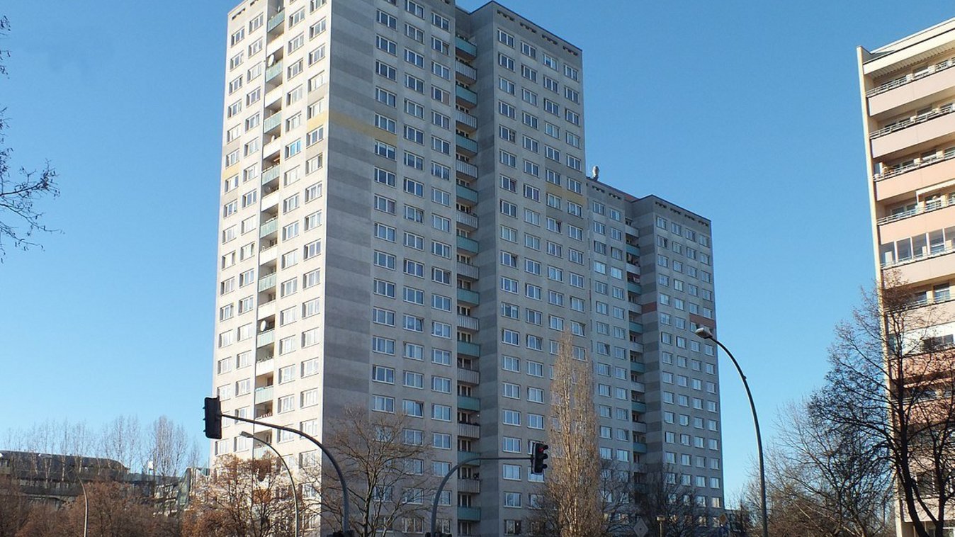 Das Doppelwohnhochhaus in Berlin-Lichtenberg gehört mit 296 Wohnungen und 18 bzw. 21 Geschossen zu den größten Typenbauten der ehemaligen DDR. Die Eigentümerin, die HOWOGE, hat Implenia den Auftrag erteilt, die Fassade energetisch zu optimieren und auf KfW-Effizienzhaus 55-Standard zu heben.