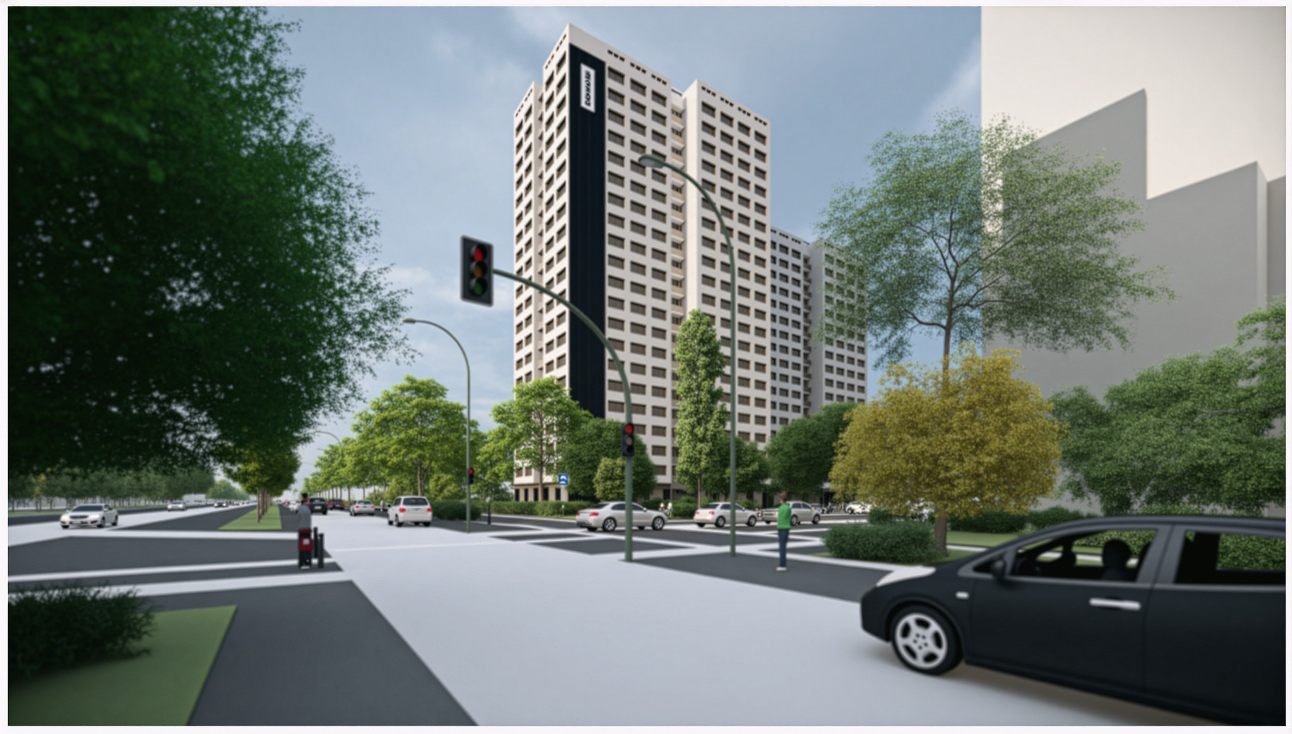 Für die Howoge führt Implenia die energetische Sanierung der Fassade eines 40 Jahre alten, in Plattenbauweise errichteten Doppelwohnhochhauses aus. Die Maßnahme erfolgt im bewohnten Zustand des Gebäudes und ist Teil einer umfangreichen Modernisierung.