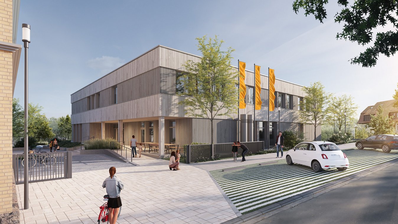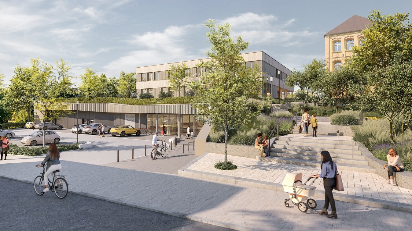 Implenia errichtet in Heilbronn einen Schulneubau in Holz-/Hybridbauweise sowie im Sockelgeschoss einen Markt.