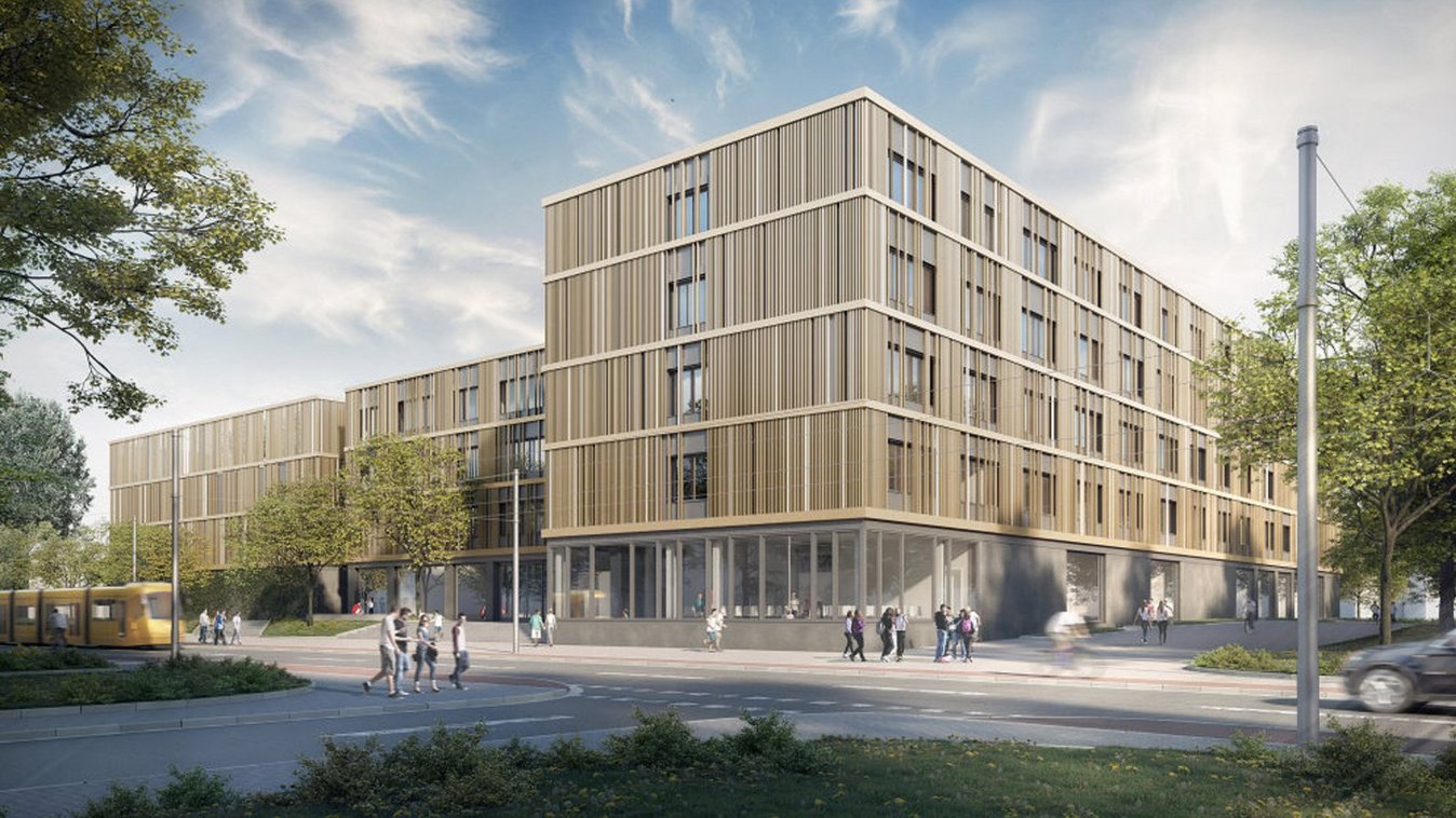 Für den Schulneubau auf dem ehemaligen Dresdner Kohlebahnhof liefert Implenia Fassadentechnik Metallkassetten und Lamellen für die Fassaden.