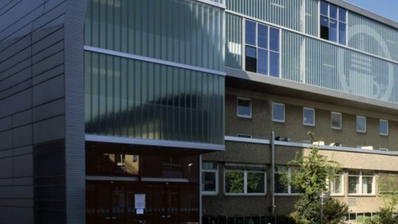 Kasino und Patientenversorgung wurden als Aufstockung auf dem bestehenden Gebäude der Apotheke realisiert. Aus den baulichen Strukturen der 60er und 70er Jahre wurde ein zeitgemäßes städtebauliches Ensemble.