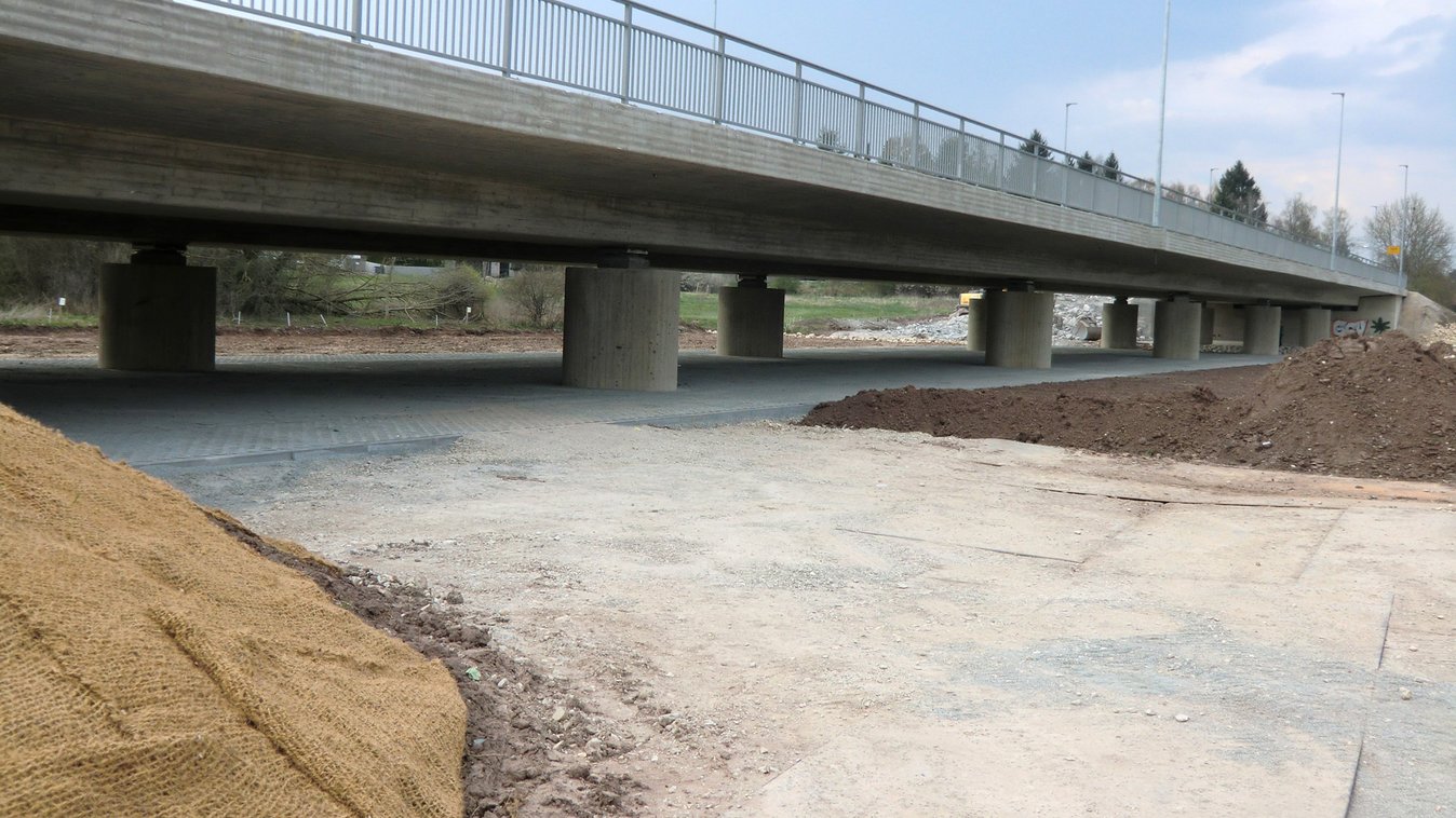 Für die Herstellung der neuen Brücke war zunächst eine Gewässeranpassung unter besonderen ökologischen Aspekten (aufgrund von Bachmuschelverdacht und Elektroabfischung) erforderlich.