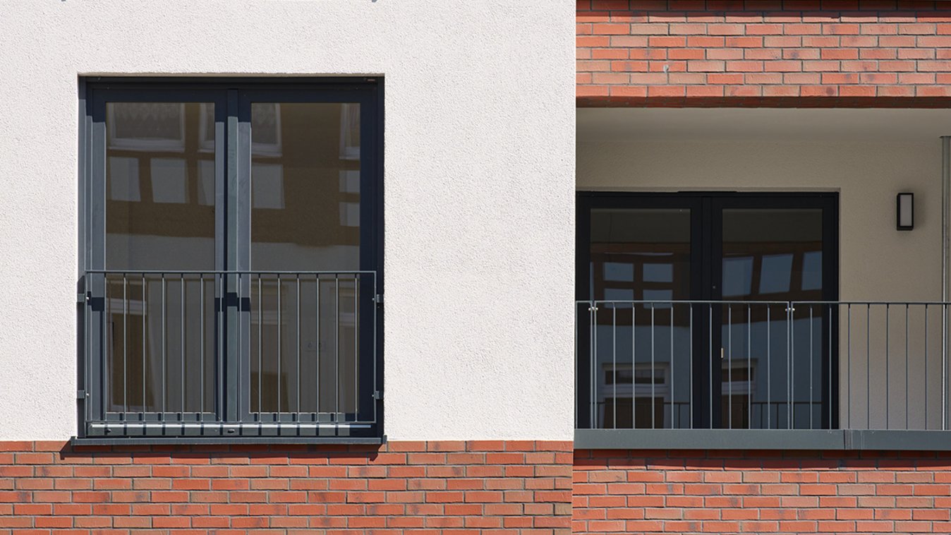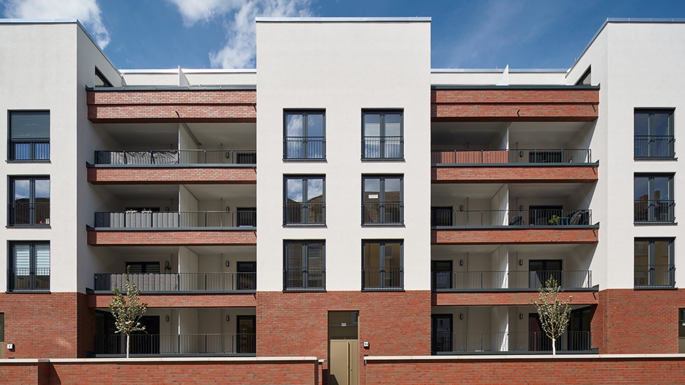 Auf rund 9.100 m² BGF sind hier 72 Wohneinheiten, sowie Gewerbeflächen mit 2.430 m² BGF entstanden. Gebaut wurde nach dem Entwurf von Grabowski Spork Architekten, Wiesbaden, die als Sieger aus dem vorangegangenen Wettbewerb hervorgingen.