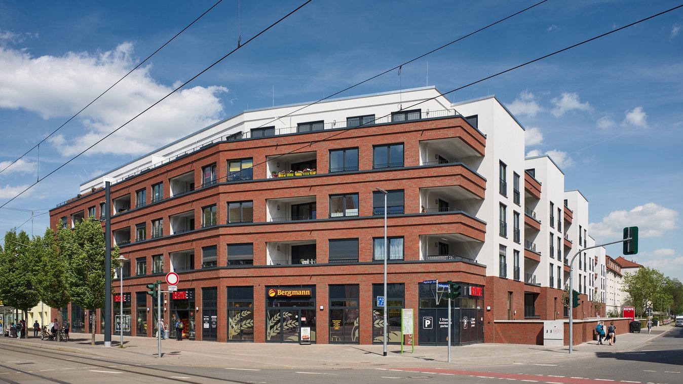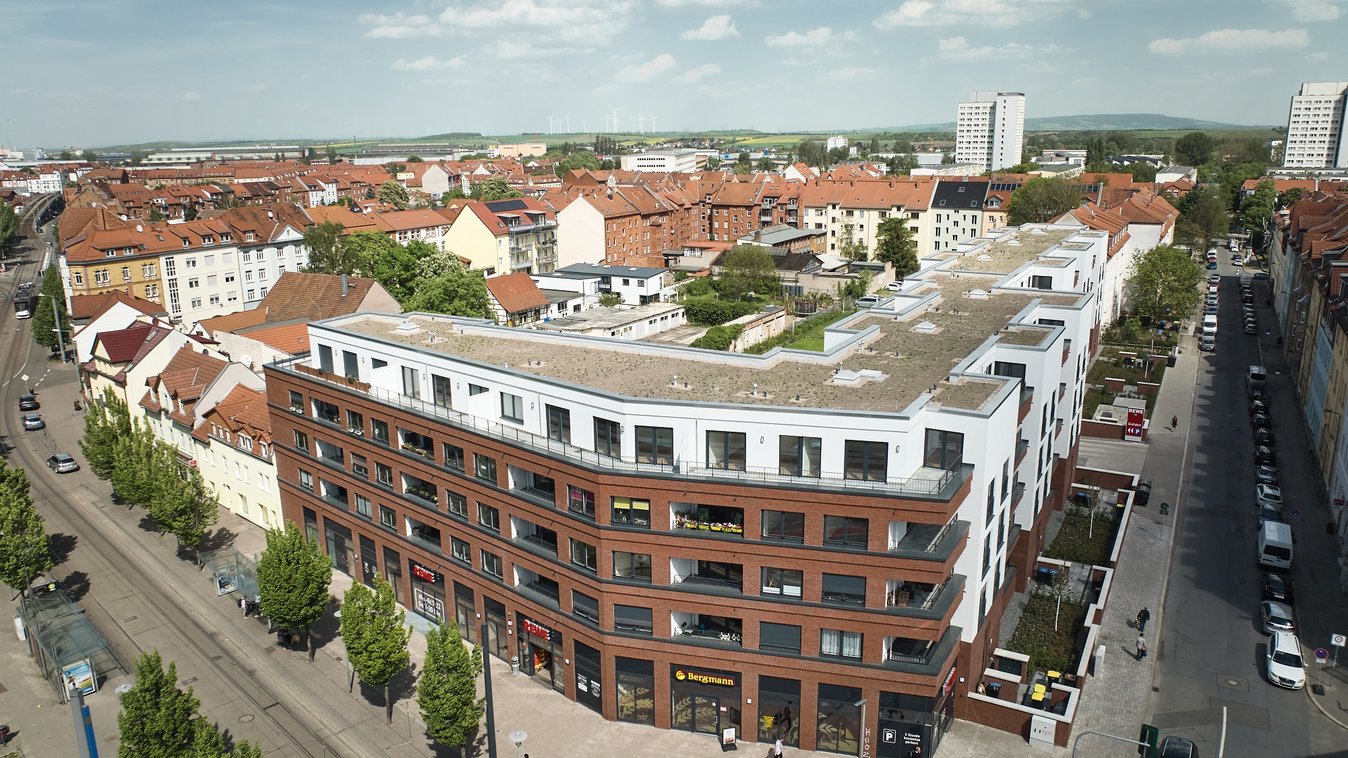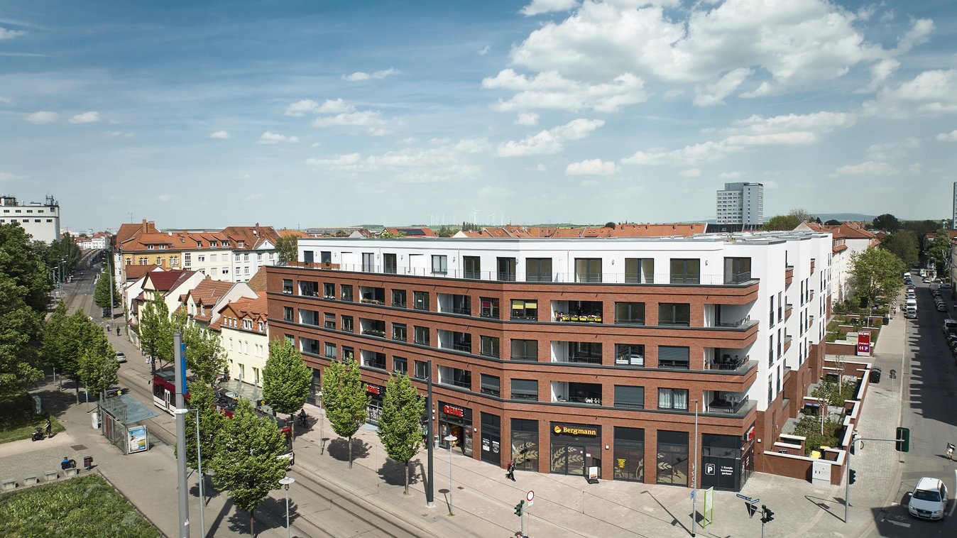 Implenia hat für die GSW in Erfurt ein Wohn- und Geschäftshaus als neuen Mittelpunkt des Stadtquartiers errichtet.