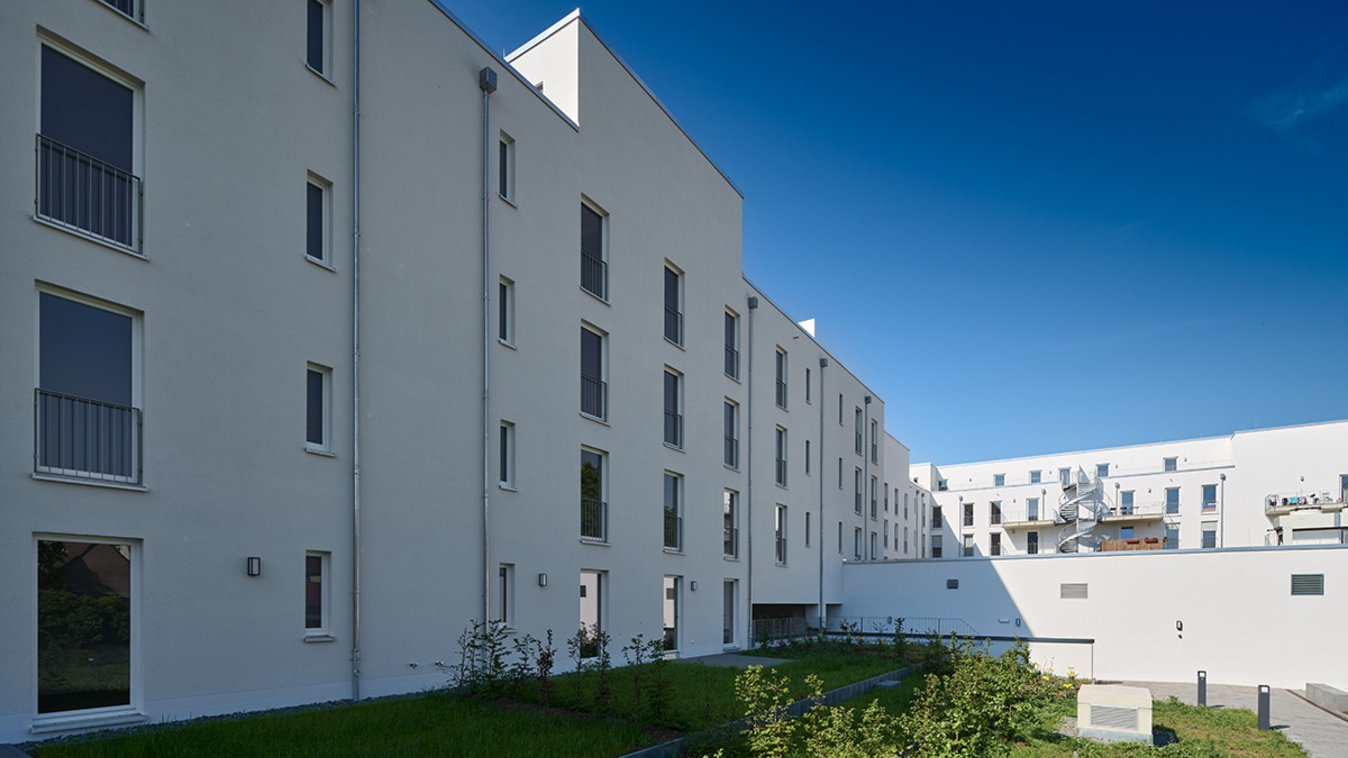 Alle Wohnungen orientieren sich sowohl zu den Straßen als auch zum ruhigen Innenhof und verfügen entweder über eine Loggia und einen Balkon oder einen Garten im Erdgeschoss. Der Innenhof der Anlage ist als Spiel- und Gartenzone konzipiert und steht allen Bewohnern zur Verfügung. Das 4. Obergeschoss lässt als Staffelgeschoss entlang der Allee eine durchgängige Dachterrasse entstehen. Entlang der Wohnstraße sind dies private Dachterrassen.