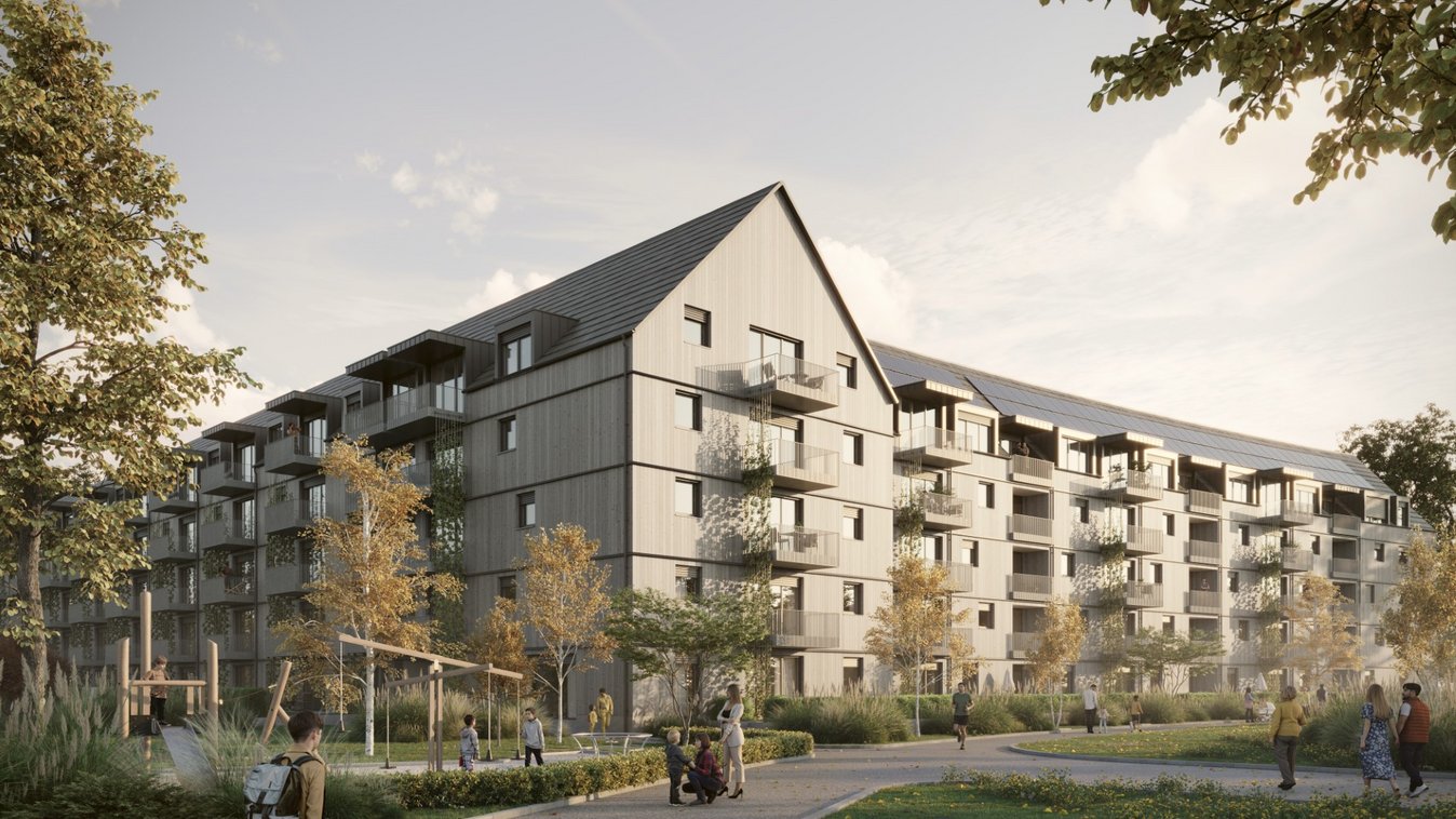 Implenia errichtet Wohnanlage mit seriellen Bauelementen, flexiblen Grundrissen und Fassaden in Holzrahmenbauweise.