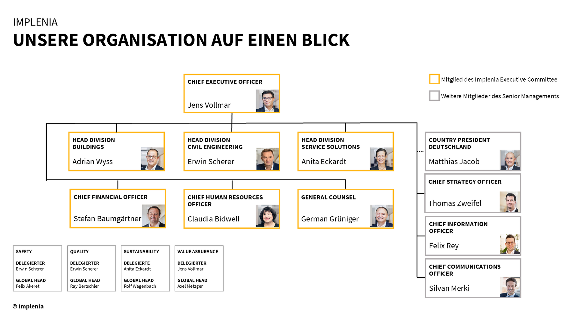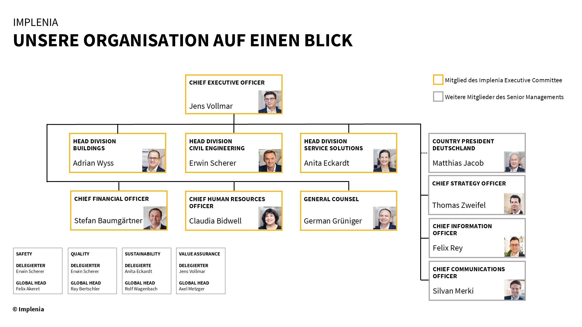 Um die Nähe zu unseren Kunden und eine tiefe lokale Verankerung sicherzustellen, etablierten wir regional und national Organisationen, die bereichsübergreifend die Interessen von Implenia vertreten.
