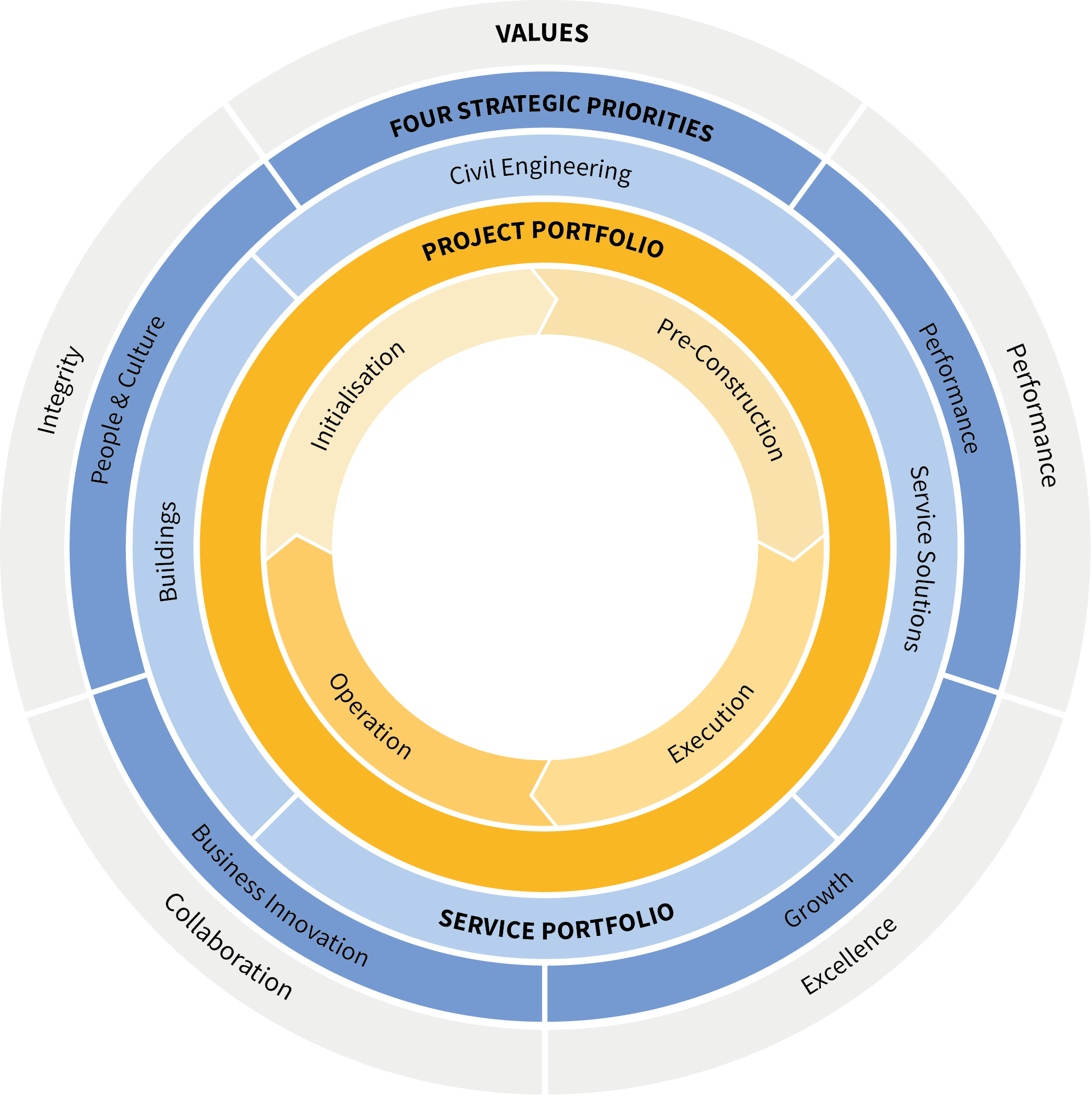 As a multinational leading construction and real estate service provider, Implenia has set itself a clear course, and its employees are committed as a team to the company’s values. In its efforts to fulfil its vision and implement its mission Implenia has four strategic priorities.