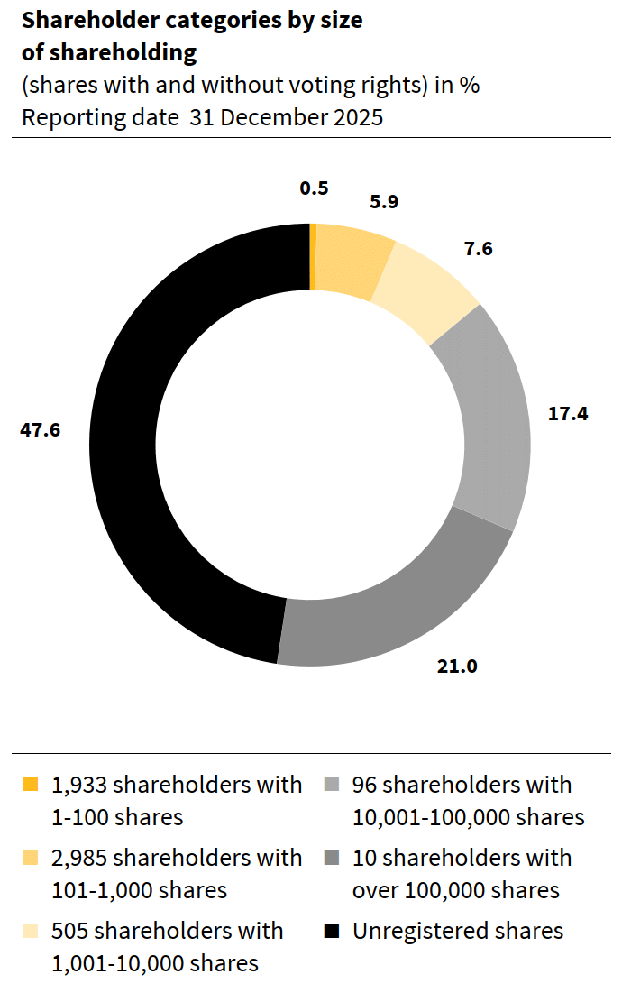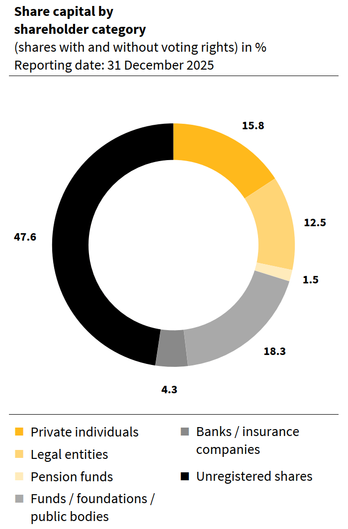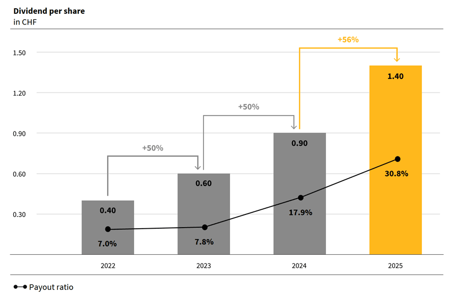 Based on the economic success and a further strengthening of the balance sheet, the Board of Directors will propose an increase in the dividend of 56% to CHF 1.40 (previous year: CHF 0.90) per share at the Annual General Meeting of Shareholders on 31 March 2026.