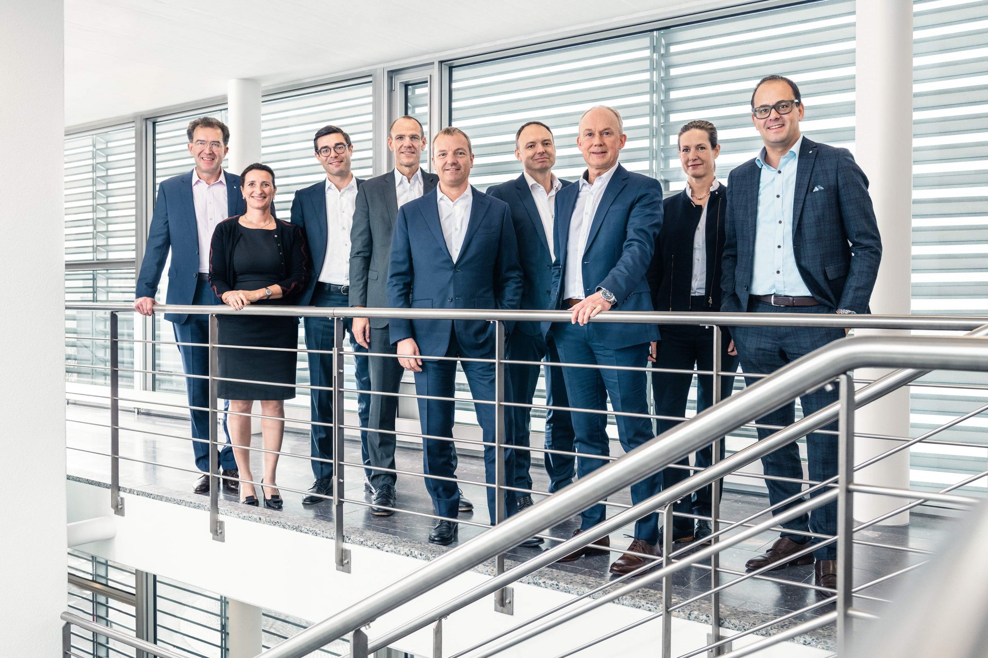 Christian Späth (Head Division Civil Engineering), Christelle Beneteau (Chief Human Resources Officer), Jens Vollmar (Head Division Buildings und Country President Switzerland), Marco Dirren (Chief Financial Officer), André Wyss (Chief Executive Officer), German Grüniger (General Counsel), Matthias Jacob (Head Country Management und Country President Germany), Anita Eckardt (Head Division Specialties), Adrian Wyss (Head Division Development)