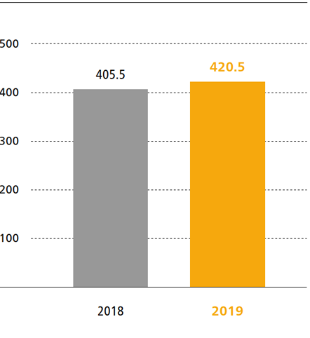 Implenia’s balance sheet remains robust. Cash and cash equivalents remained around the same level as the prior year at CHF 912.3 million (2018: CHF 913.2 million). Total assets at end-2019 came to CHF 3,083 million (2018: CHF 2,861 million). The increase is primarily due to the first-time application of IFRS 16. Equity rose over the year from CHF 585.2 million to CHF 590.5 million. As a result, the equity ratio is basically unchanged at 19.2% (19.8% excl. currency and pension impact). The Group still has a solid equity base by industry standards, and Implenia is confident that this will continue. Confidence is fuelled by the completion of PPA amortisation and the expected positive contributions from operating business, as well as by the planned Ina Invest transaction. Implenia is unequivocally committed to maintaining its investment-grade credit rating.