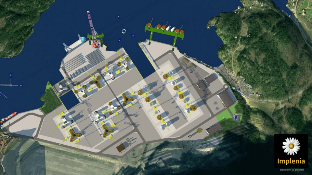 WindWorks Jelsa: Visualization of the future production and assembly facility for floating offshore wind farms in Jelsa, Norway (Image: ©Implenia)