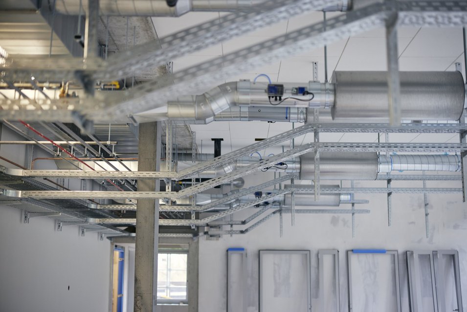 As well as the FGCZ, I am currently also working on the laboratory building for EMPA – my first experience of this field. What we are planning and implementing in the temporary laboratory here is totally different from conventional residential construction. That goes especially for the execution, which is the responsibility of my colleague Lukas Bürgler, construction manager for building technology. Maximum precision is essential. The various gases used here alone demonstrate the specific requirements. Be it different classes of nitrogen, argon or helium, each medium is transported via a separate line to the laboratory, where it is distributed to the required workspaces via taps. There is also specialist technical laboratory equipment, such as the lab hoods that draw off harmful gases and vapours.