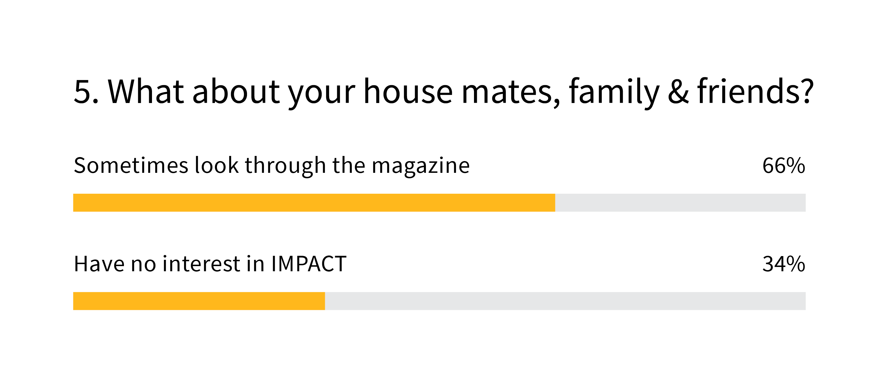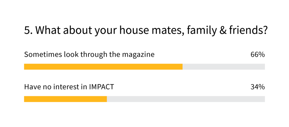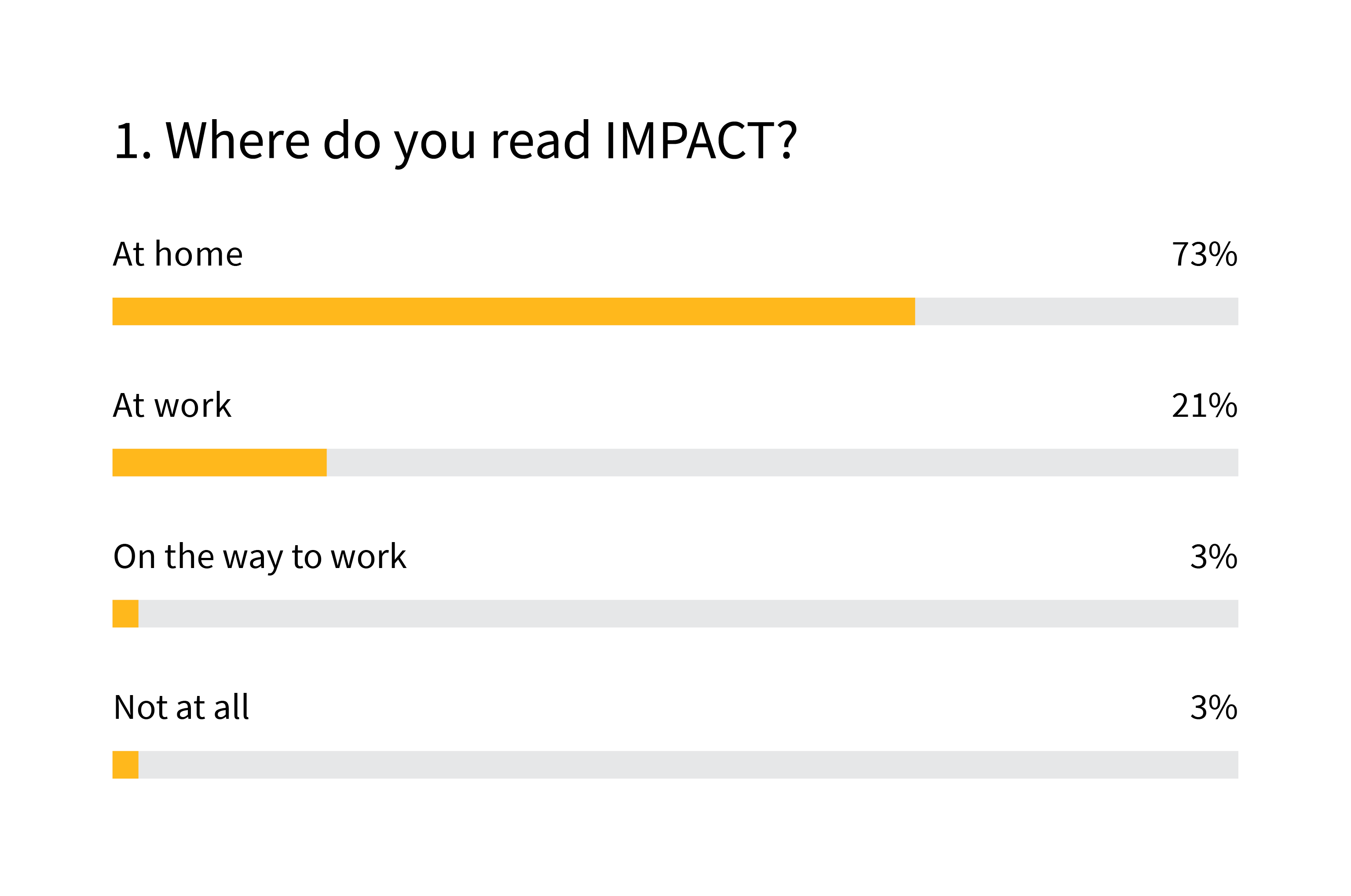 For most of you, IMPACT is something you read at home: Almost three quarters of all respondents said that the place they read the magazine is not far from their letter box.