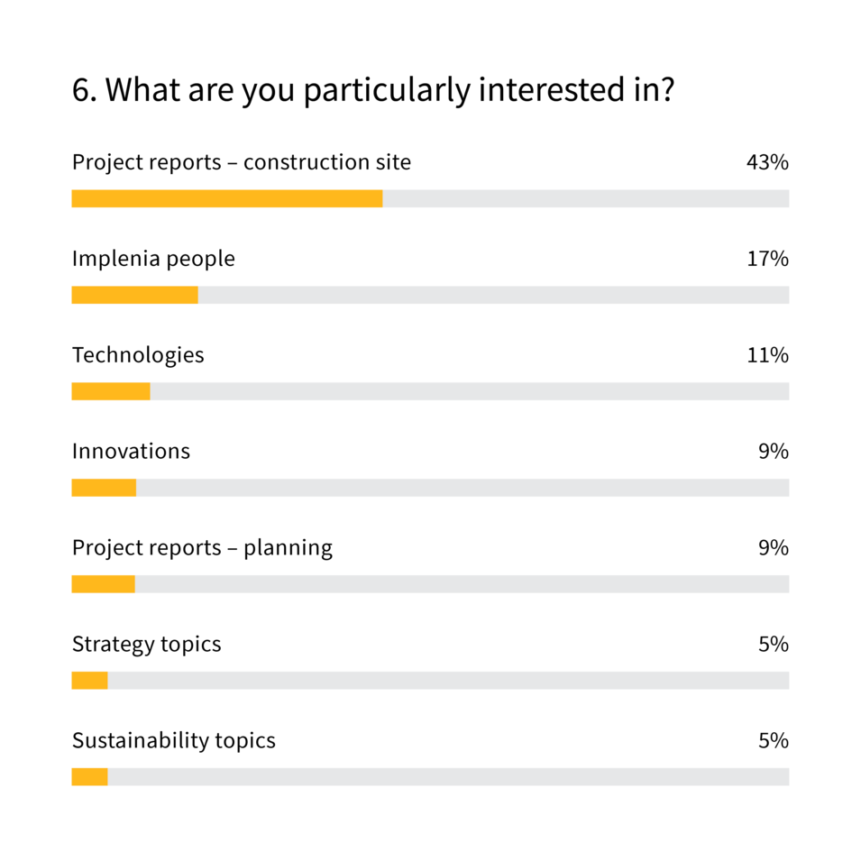 Have you checked your letter box today? In December it will be worth a look: The new IMPACT will be sent by post hot off the press to all Implenia staff, except the team in Sweden, but including retired staff in Switzerland. Some will be looking forward to the post, some not so much – as our reader survey in summer 2021 showed. 354 of you took part in it in July and August. Here are the most important findings and what we are doing about them.