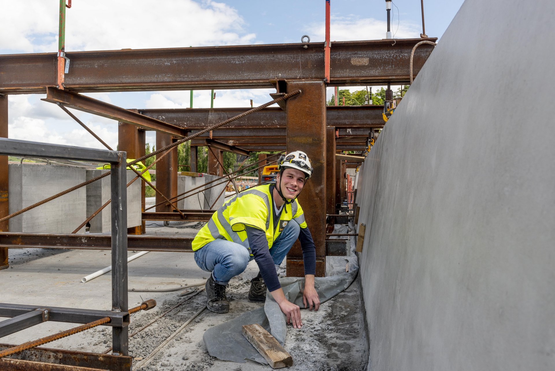 The 750-metre long Lidingö Bridge is Sweden's longest tram bridge. It connects the suburb of Lidingö, located on an island, with Stockholm. Tim is doing an internship in construction management, which means he supports the foremen and engineers during construction by taking responsibility for the precast elements used during construction. "I like being on the construction site, being part of the team and seeing how the project develops!" he says enthusiastically.