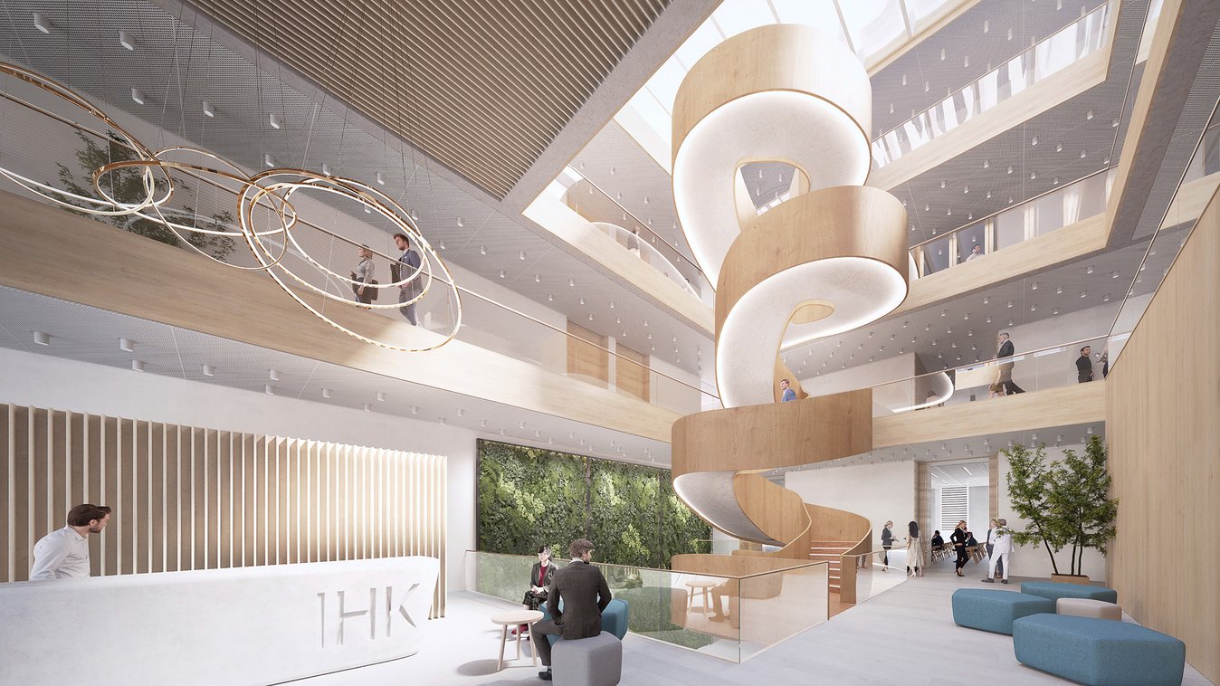 After deconstruction of the existing building, Implenia is constructing the new turnkey headquarters with underground parking for the IHK Pfalz.