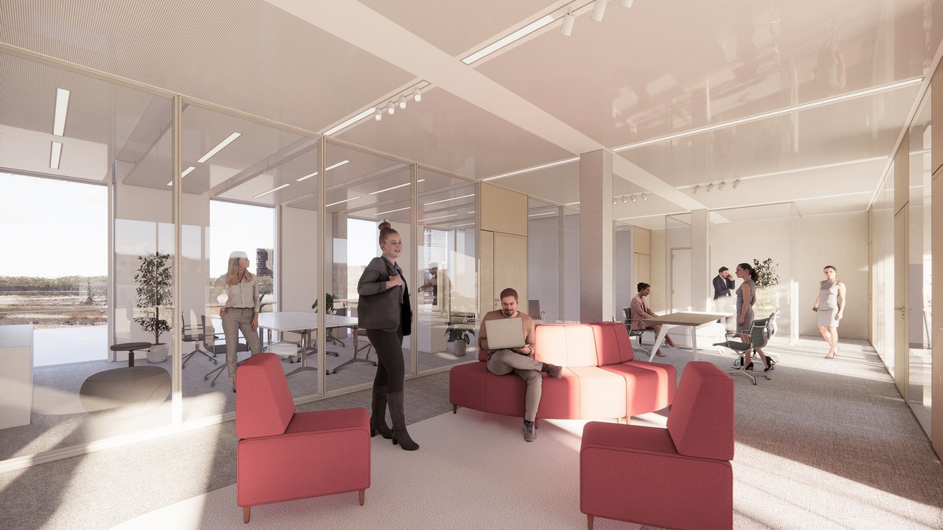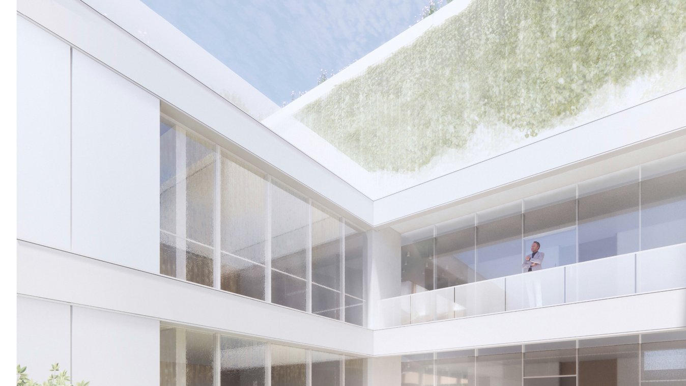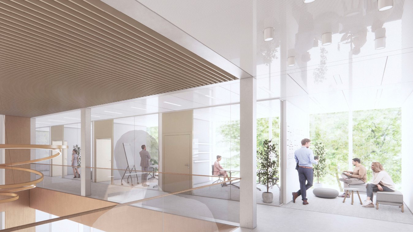 The property is being built to the KfW40NH standard. Supporting measures include a PV system, water-cooled chiller with surface cooling systems (cooling ceilings & cooling sails), district heating.
