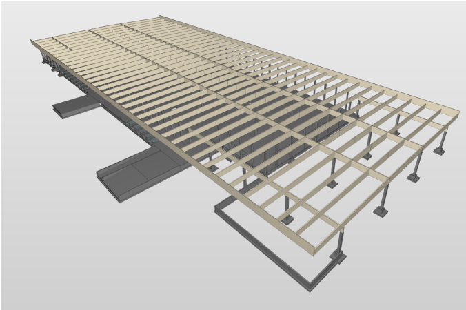 The dimensions are impressive: The main dimensions are approx. 151 x 62 m, the roof area including canopies measures approx. 181 x 71 m. The roof structure consists of the aforementioned glulam beams, up to two meters high and 31 meters long, which are supported on prefabricated concrete columns in a grid of five meters. In addition, the roof structure comprises a total of 12,600 m² of prefabricated ceiling elements, manufactured by Implenia Holzbau.