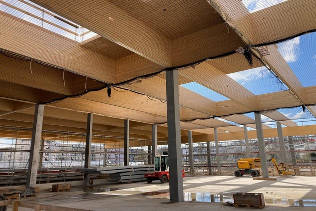 "The logistics of this project are very complex, and the working time with the lifting equipment is limited due to airport operations," explains Beda Weber, Head of Implenia Timber Construction. "Every step requires millimetre-precise coordination and perfect planning." It is particularly challenging to synchronize a large number of deliveries in a short space of time. The large-format beams are only assembled at night between 11.30 p.m. and 5.30 a.m. so as not to disrupt airport operations. The roof elements are installed during the day and at night. "This is real teamwork, day and night," says Beda Weber. The construction phase for the timber construction is expected to last until the end of spring 2025.