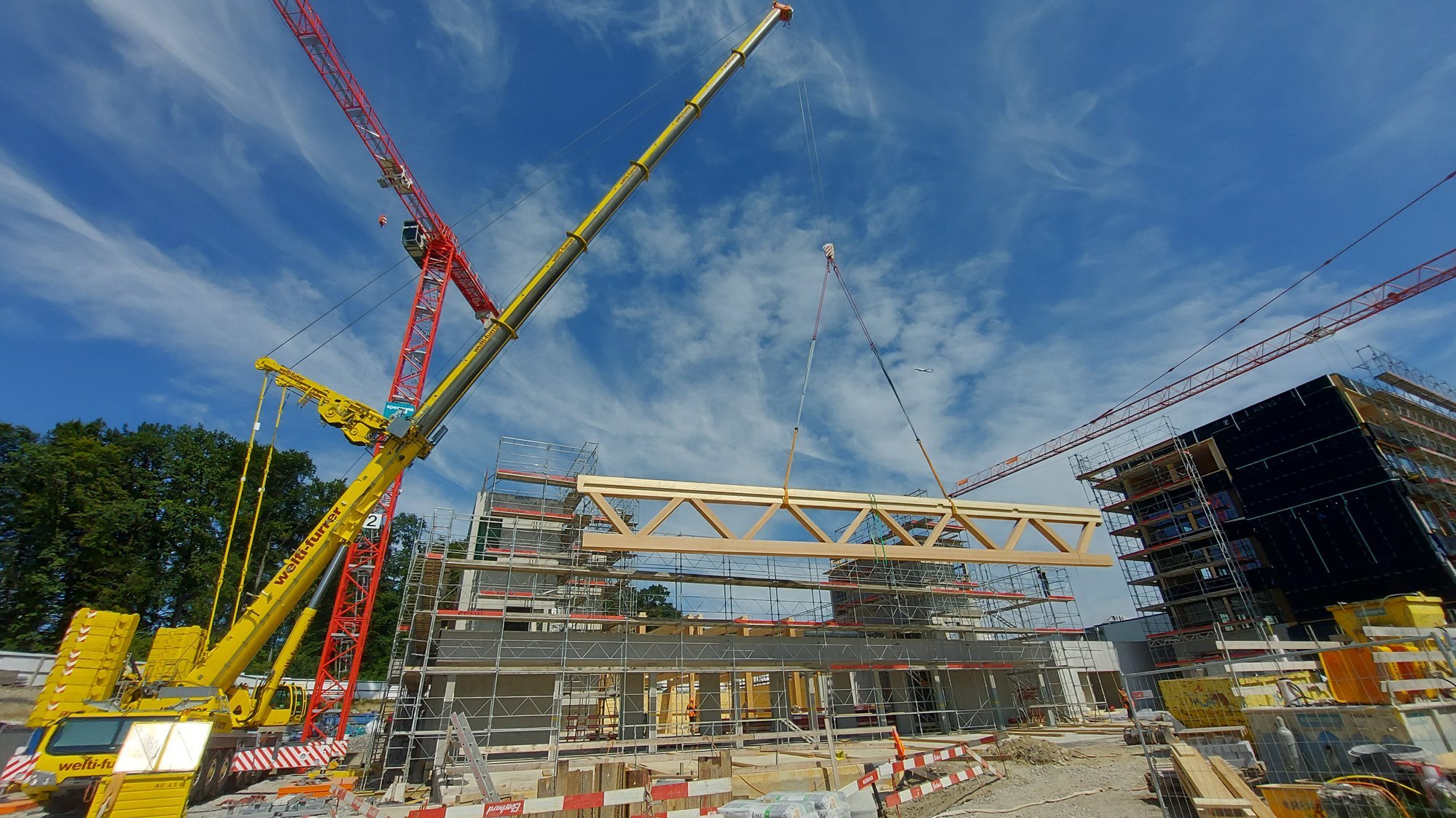Implenia Holzbau a achevé avec succès la première étape. L'un des défis particuliers était la multitude de travaux menés en parallèle avec d'autres entrepreneurs – et ce, dans un calendrier sportif. L'équipe engagée l'a maîtrisé grâce à une planification précise du projet juste à temps et à une exécution tout aussi coordonnée.