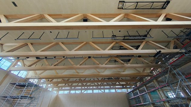 Les élèves du « Nägi » étudieront et feront du sport à l'avenir dans une atmosphère spatiale particulièrement agréable : Rien que dans la première étape de construction du nouveau complexe scolaire, qui comprend la double salle de sport et le bâtiment de l'école secondaire, environ 2300 m3 de bois ont été utilisés.