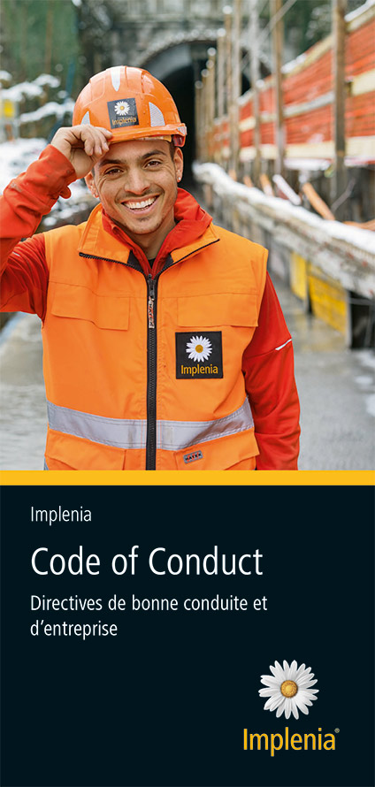 Dans le Code of Conduct « Comment nous fonctionnons », Implenia a défini ses valeurs fondamentales d’entreprise responsable : excellence, collaboration, agilité, intégrité et durabilité. Le Code régit les relations des collaboratrices et collaborateurs entre eux de même que le comportement vis-à-vis des partenaires commerciaux, des autorités et des questions environnementales.