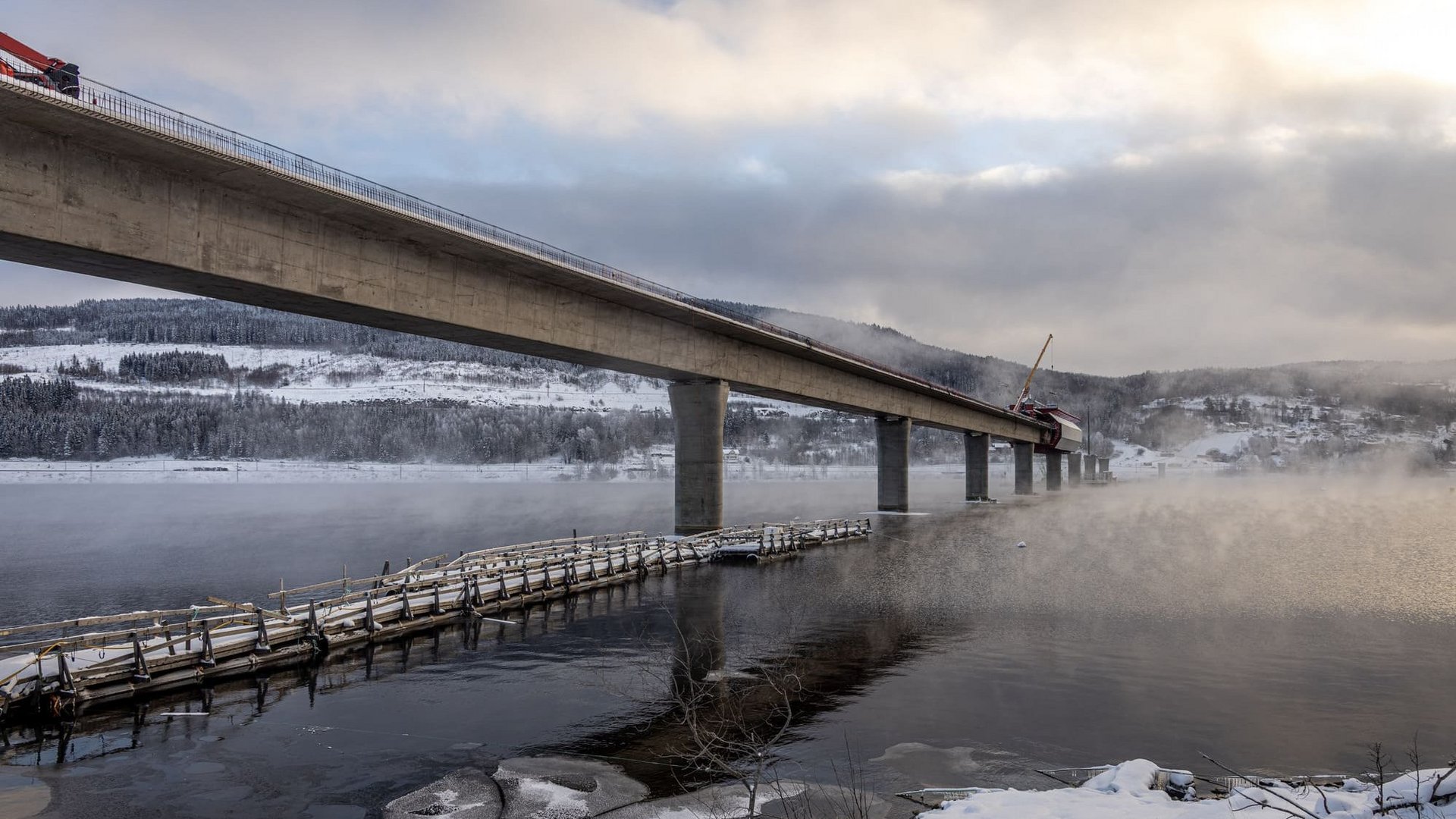La construction d'un pont ferroviaire dans des conditions météorologiques hivernales est exigeante, surtout lorsque le temps et la température changent soudainement. À Tangenvika, Implenia travaille dans des conditions qui offrent occasionnellement aussi bien des températures de gel que de fortes chutes de neige.