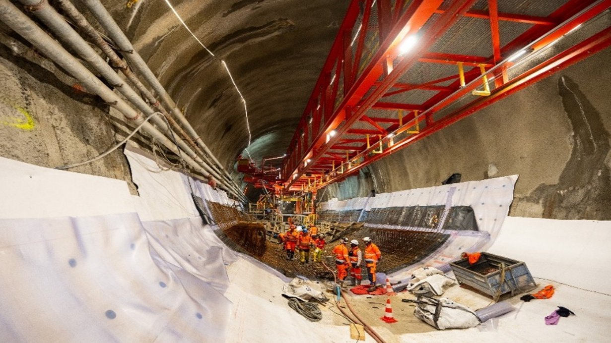 La réalisation du revêtement de l’entrée du tunnel de base du Mont-Cenis illustre la complexité et la précision requises pour un ouvrage de cette ampleur. À chaque étape, les équipes doivent composer avec des contraintes spécifiques, telles que le déplacement préalable des réseaux d’eau, d’éclairage, de communication et d’électricité, indispensable pour libérer les zones nécessaires à l’avancement des travaux. Par ailleurs, préalablement au passage de l’atelier de la contre-voûte, le tube creusé doit être décaissé, complètement nettoyé et finalisé en partie basse. Le revêtement provisoire en béton projeté doit être égalisé et les défauts comblés afin de respecter les tolérances géométriques de forme exigées par le complexe d’étanchéité.