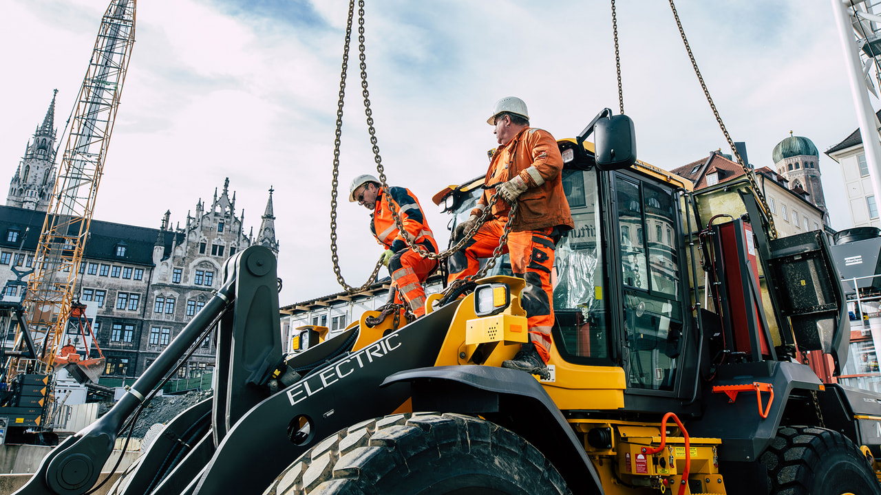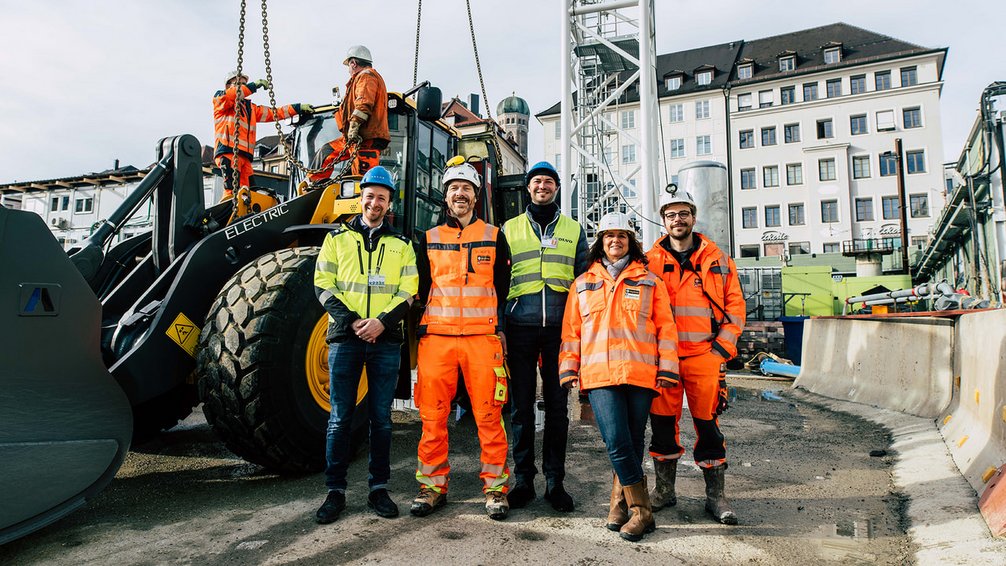 Pour la construction de la gare de Marienhof, le consortium Marienhof (Implenia / HOCHTIEF) utilise pour la première fois une chargeuse sur pneus de Volvo, entièrement électrique. L’entreprise réduit ainsi les gaz d’échappement et le bruit et fait progresser la décarbonation de ses processus de construction.