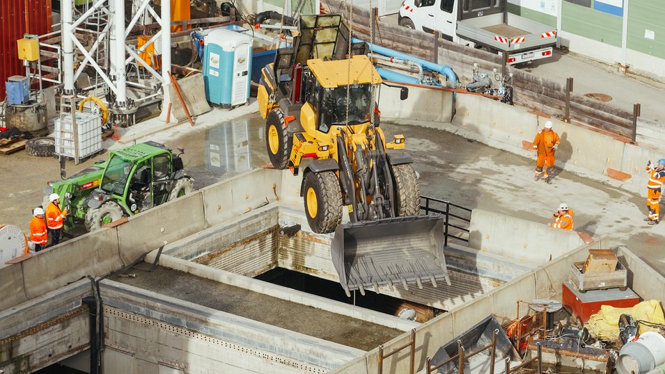 Avec cet essai sur le terrain, le consortium Marienhof, regroupant Implenia et HOCHTIEF, profite des avantages des engins de chantier électriques et exploite leurs points forts dans le travail au quotidien. La chargeuse sur pneus entièrement électrique L120 Electric améliorée offre des performances aussi puissantes que le modèle équivalent au diesel, mais sans gaz d’échappement. Sur ce chantier, l’absence d’émissions est indispensable car le tunnel est creusé « sous pression » pour éviter toute pénétration d’eaux souterraines. La pression dans le tunnel correspond à celle régnant lors d’une plongée à quatre mètres de profondeur. Aucun véhicule au diesel ne doit être utilisé ici en raison du risque accru d’incendie.