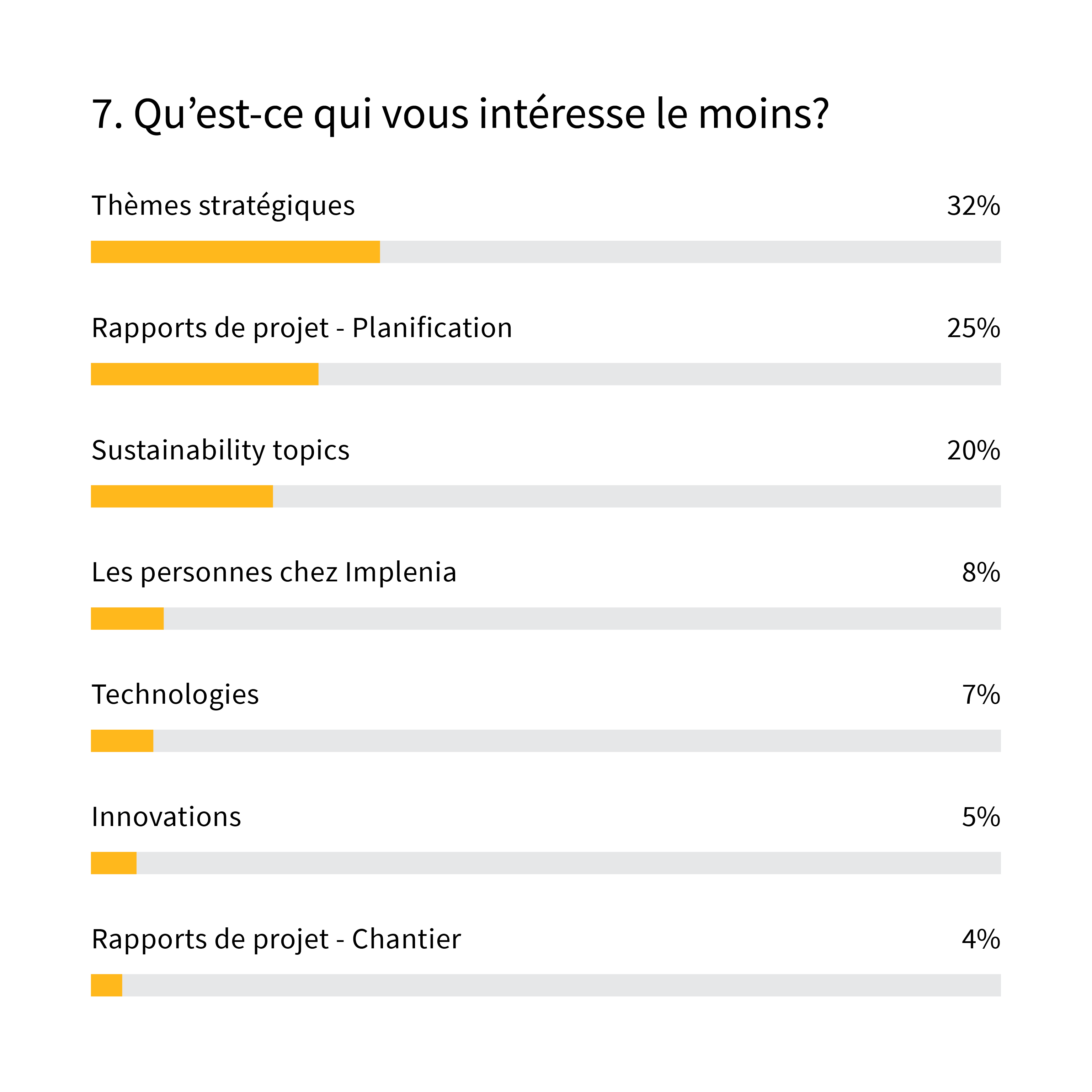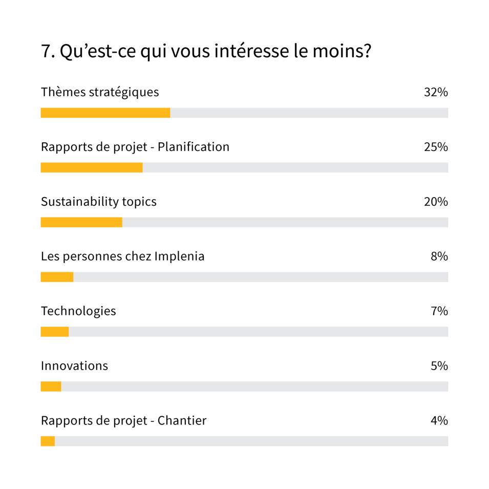 Il existe également des priorités claires en termes de contenu. Les rapports sur la pratique et les personnes sont très demandés. De même, les nouvelles technologies passionnantes peuvent être une source d'inspiration. Moins intéressant: Les thèmes stratégiques et de planification et les thèmes liés au développement durable.