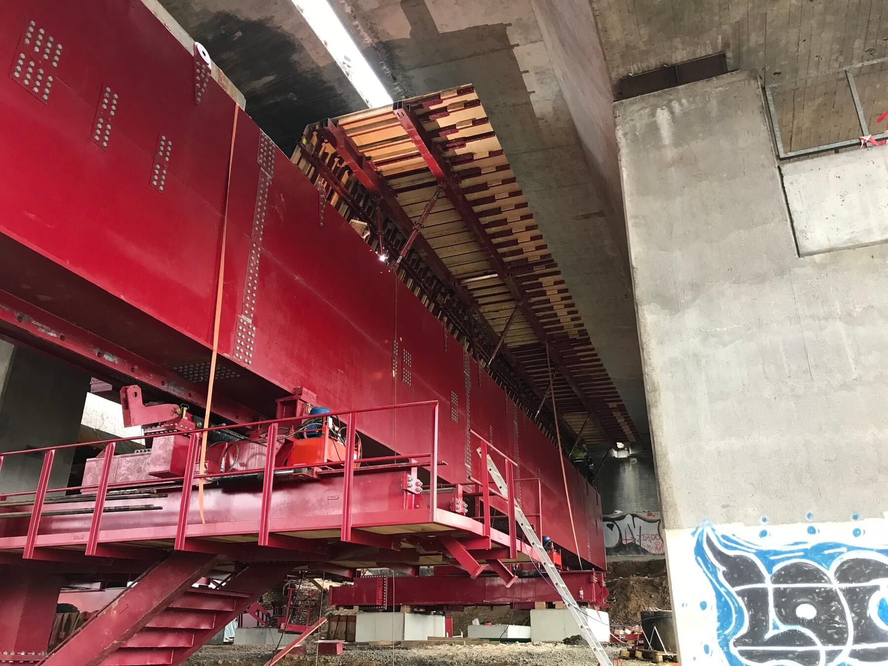 Démolition et reconstruction des ouvrages partiels en direction de Hanau et en direction de Dortmund en utilisant un échafaudage d'avancement.