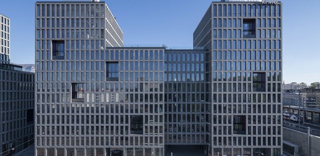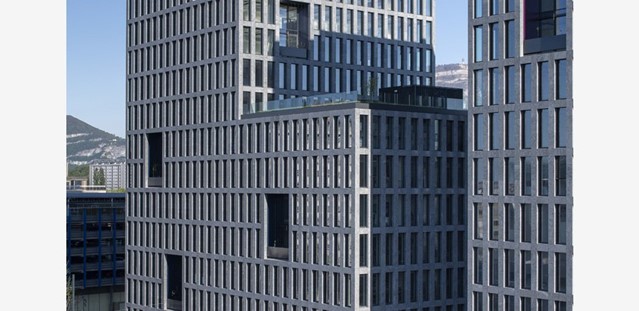 La plastique exacte de chaque bâtiment optimise l’identité propre de chaque lot en renforçant la cohésion de l’ensemble. Le jeu de terrasses à différents niveaux est généralisé à l’ensemble du site. Par exemple, la liaison entre deux bâtiments crée une terrasse au niveau du plateau ferroviaire et fait tampon entre les nuisances des activités de transport et la place principale, tout en proposant des activités récréatives pour le quartier. Le jeu des loggias en façades complète la variété des espaces extérieurs développés dans ce projet. Cet élément typologique rapproche le monde du travail de la vie domestique et permet de bénéficier d’espaces de pause et de détente à l’extérieur.