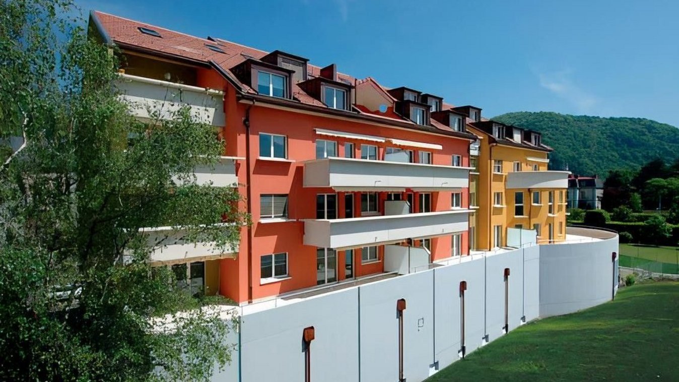 L’habitat en ville suscite un regain d’intérêt, lorsqu’il offre la proximité des services, des transports, des loisirs et des commerces, associée à la qualité de vie d’un environnement privilégié (verdure, montagnes). Le bâtiment de 16'500 m3 SIA compose un programme de 20 logements, allant du 3 pièces au triplex de 5 pièces, répartis sur 5 niveaux. Afin d’apporter une touche de vie supplémentaire au quartier, le rez-de-chaussée accueille un magasin d’alimentation générale et une croissanterie tea-room. Deux niveaux souterrains complètent le programme en abritant, outre les locaux techniques et de services, un parking pour 43 véhicules et un abri PC de 81 places. Amorcé en 1989, à la suite d’un plan partiel d’affectation, le projet a patienté près de 14 ans, entre oppositions et conjoncture, avant d’aboutir, début 2003, au permis de construire. Des travaux spéciaux d’ancrages se sont avérés nécessaires pour assurer la stabilité de l’ouvrage.