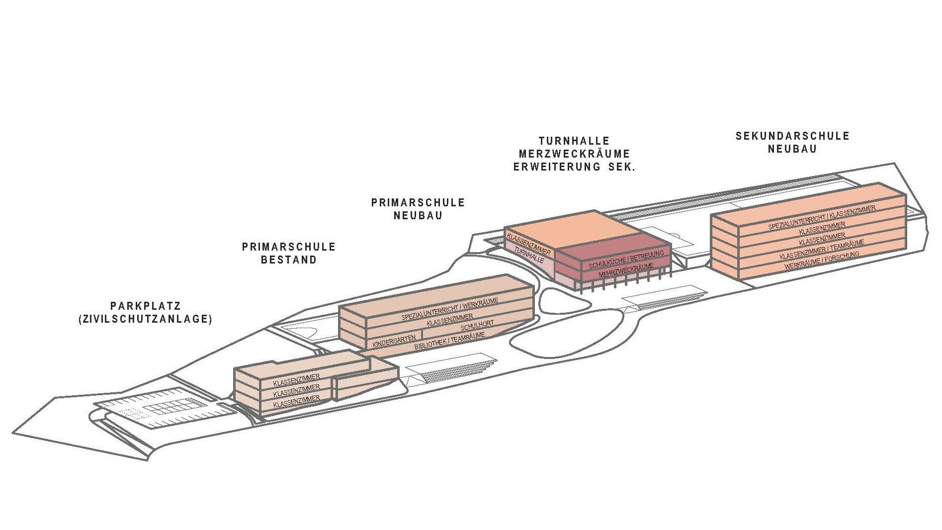 Die Planung und Umsetzung der Turnhalle und die Erweiterung der Sekundarschule erfolgte durch das Architekturbüro Galli Rudolf Architekten sowie der AS Baumanagement GmbH in enger Zusammenarbeit mit dem Holzbauingenieurbüro Makiol Wiederkehr AG. Das Resultat ist eine klar strukturierte, helle Schulanlage, die durch ihre offene Gestaltung zum Lernen, Bewegen und Begegnen einlädt.