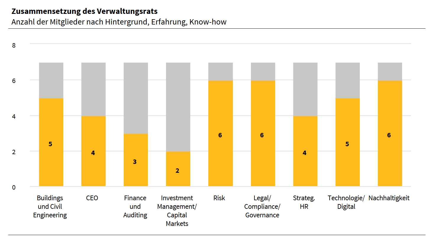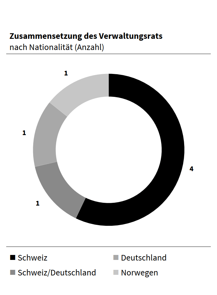 Die aktuelle Zusammensetzung des Verwaltungsrats deckt vielfältige Kompetenzen ab. Die Mitglieder verfügen über langjährige Berufserfahrung in verschiedenen Industrien. Im Rahmen des jährlichen Assessments kam der Verwaltungsrat zum Schluss, dass die Grösse des Verwaltungsrats der Grösse und der Komplexität der Gesellschaft entspricht. Eine Erhöhung der Anzahl Mitglieder ist daher nicht angezeigt. Die Grafiken auf der rechten Seite zeigen die Diversität des Verwaltungsrats.