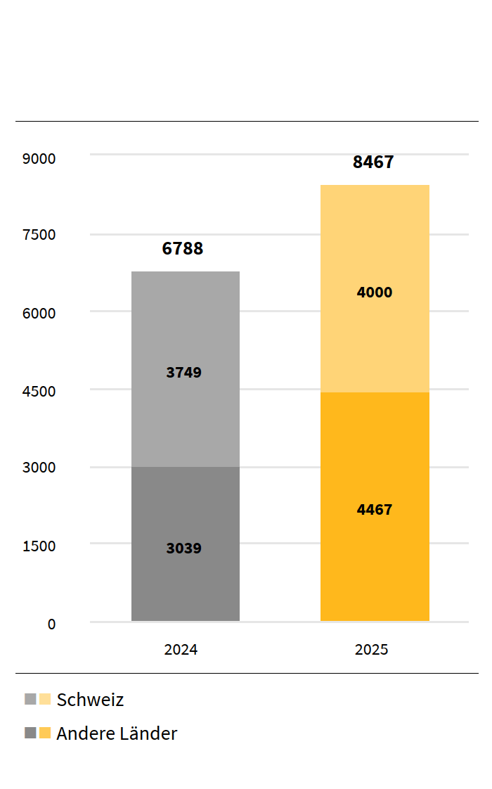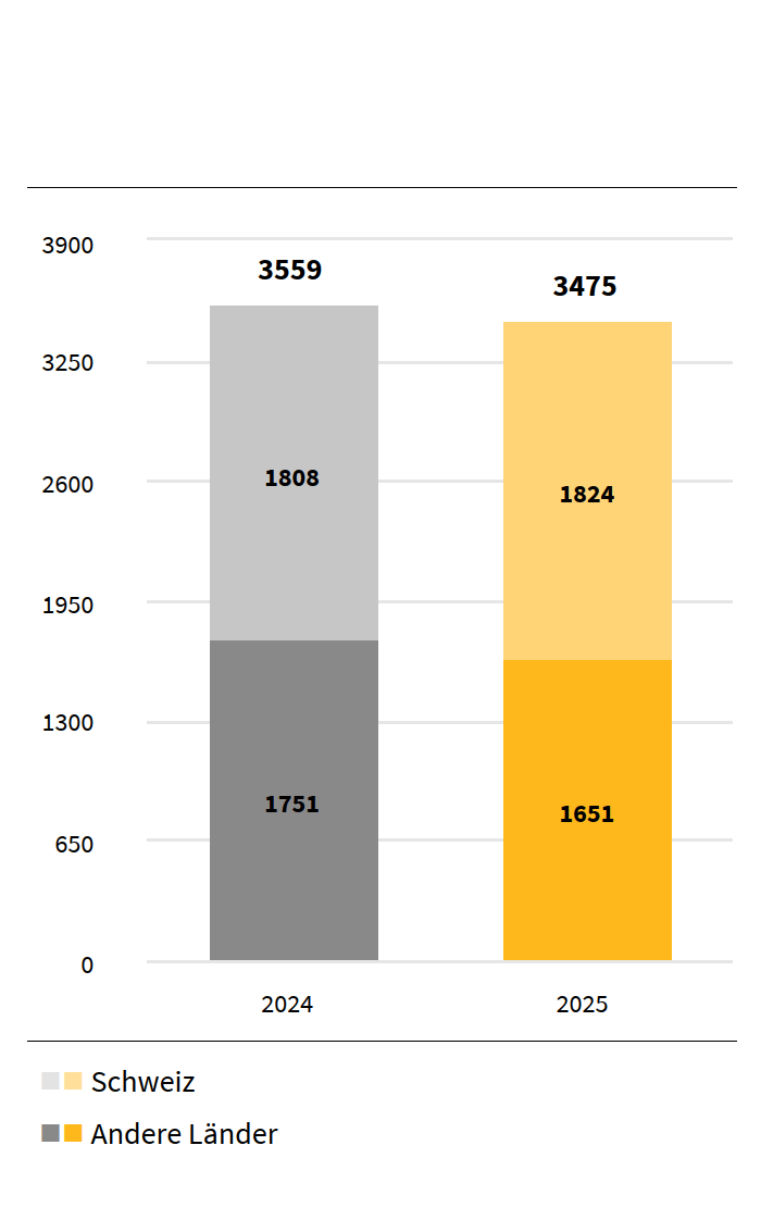 Die Vorjahreswerte wurden angepasst gemäss der neuen Organisationsstruktur ab 1. April 2025.