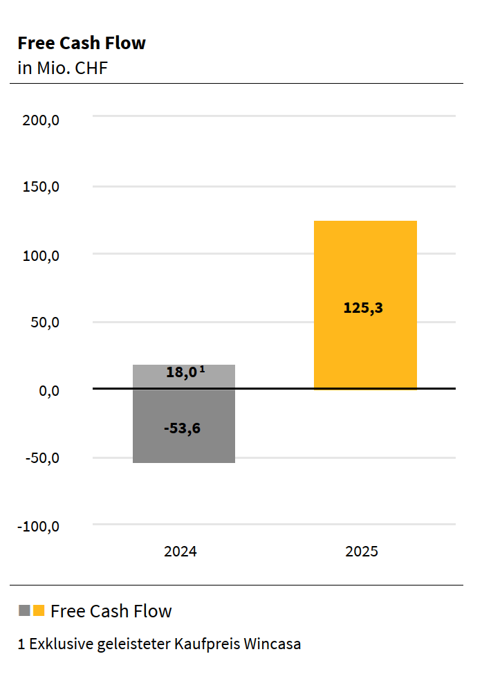 Free Cash Flow steigt auf CHF 125,3 Mio., Eigenkapitalquote erreicht 23,5 %