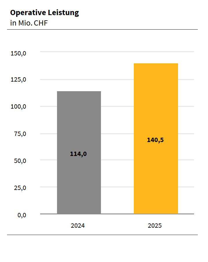 Das Konzernergebnis betrug CHF 84,7 Mio. (2024: CHF 93,4 Mio.). Die Entwicklung war beeinflusst von höheren Finanzierungskosten – unter anderem aufgrund der vorzeitigen Refinanzierungen– und steuerlichen Einmaleffekten in den Vorjahren. Das Ergebnis vor Steuern stieg auf CHF 109,2 Mio. (2024: CHF 106,4 Mio.).